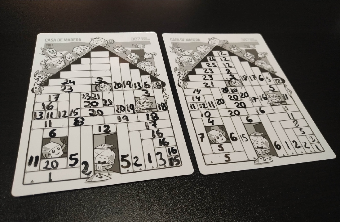 Todos los jugadores podremos escribir nuestros números de manera simultánea y jugaremos tantas rondas como sean necesarias hasta que al menos un jugador complete su lámina entera. Al tener una tirada de dados común, aquí puede suceder, sobre todo al comienzo de la partida, que, queriendo o no, nos copiemos de lo que hacen los demás. Hay que poner solución si eso sucede y nosotros normalmente empezamos con una pantalla delante nuestra para ir tapándonos en el momento de apuntar y que el comienzo de la partida se desarrolle medio en secreto durante esa etapa.