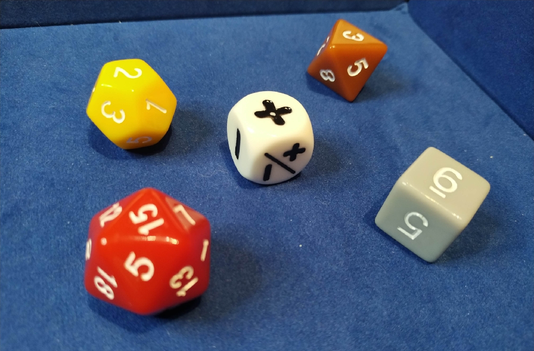 Como en todo juego que contenga dados, la rejugabilidad es bien elevada. En este caso además contamos con dados de diferente número de caras y además podremos utilizarlos solos o sumar resultados entre ellos. Eso hace aún más altas las posibilidades de hacer diferentes combinaciones y de que siempre las partidas sean diferentes entre sí. El uso del dado blanco que nos indica si añadimos o quitamos dados en la próxima tirada aumenta las variables en cada ronda y sabemos que no podemos contar con una horquilla de resultados fijos.