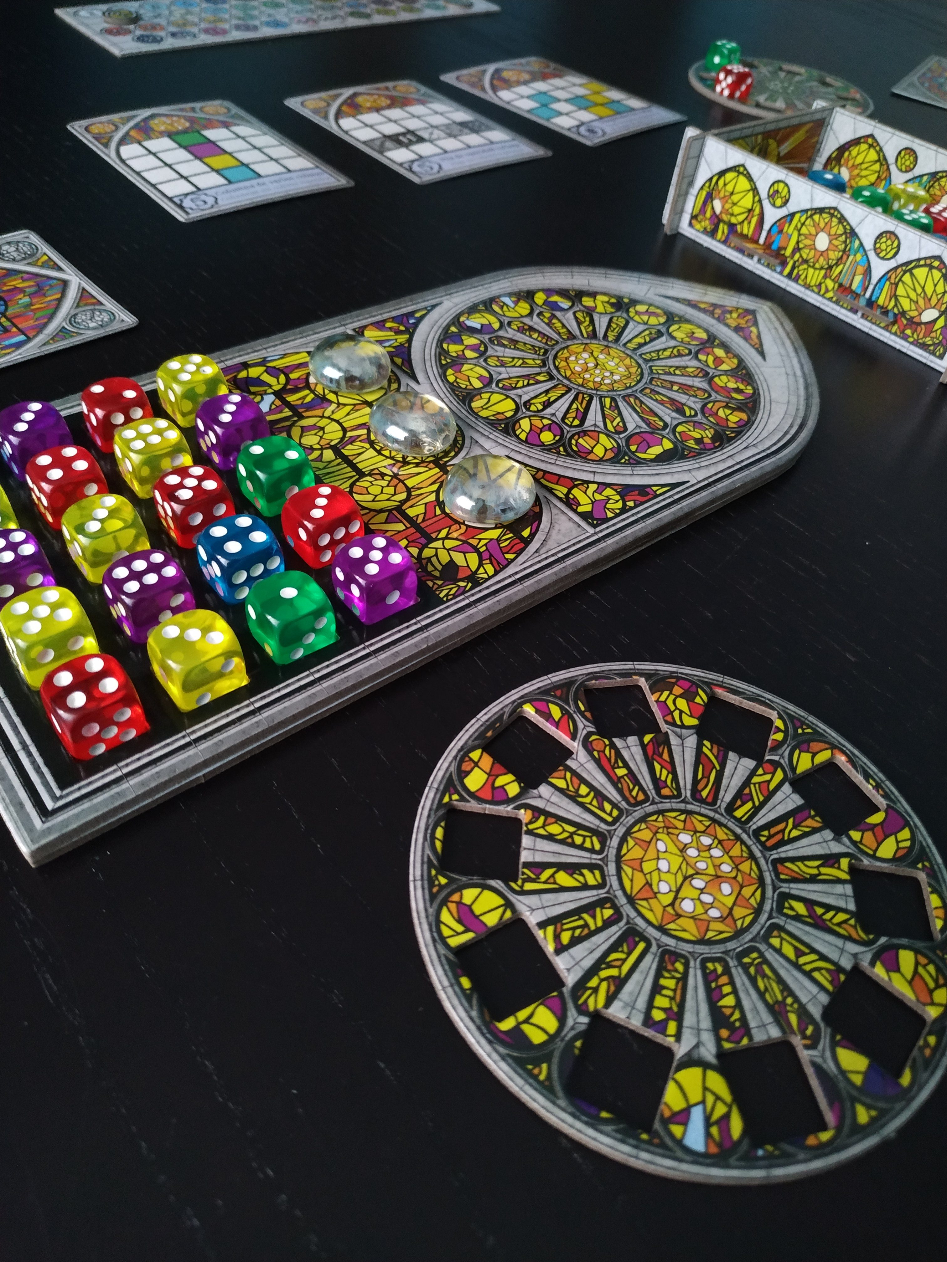 Lo que nos ha gustado muchísimo es que el tablero de dados privado introduce un nuevo punto de estrategia muy favorable, lo que hace que tengamos que tomar las decisiones de una manera diferente cuando robamos dados en nuestro turno para rellenar nuestro vitral.