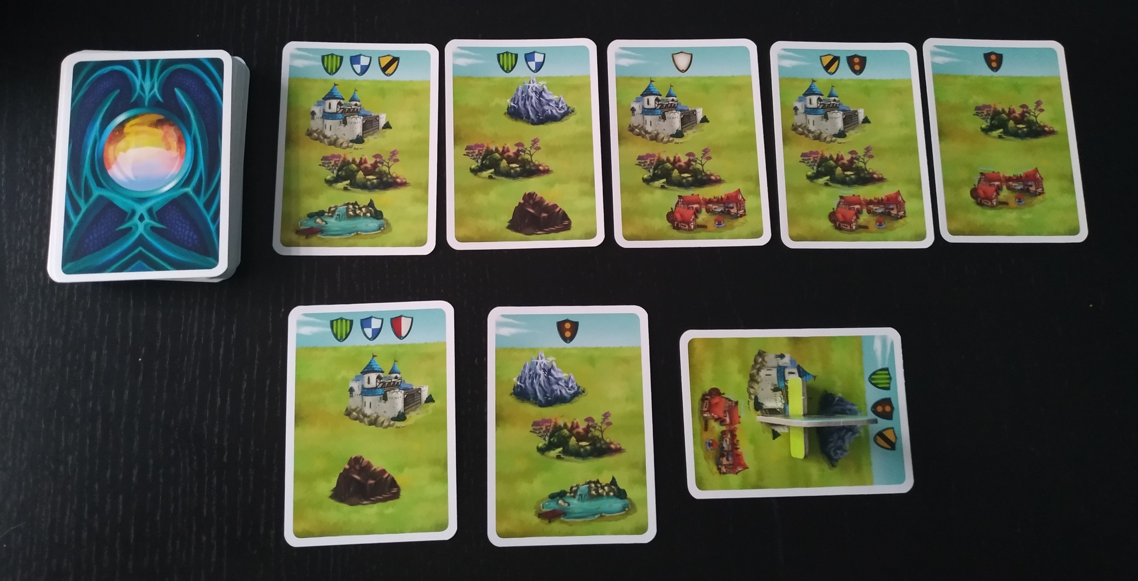 Por lo tanto, la rejugabilidad de Sant Jordi: La llegenda es bastante alta ya que el azar siempre estará presente desde el principio: cuando robemos una carta de manía hasta cuando vamos destapando cartas de ruta y eligiéndolas para crear el camino.