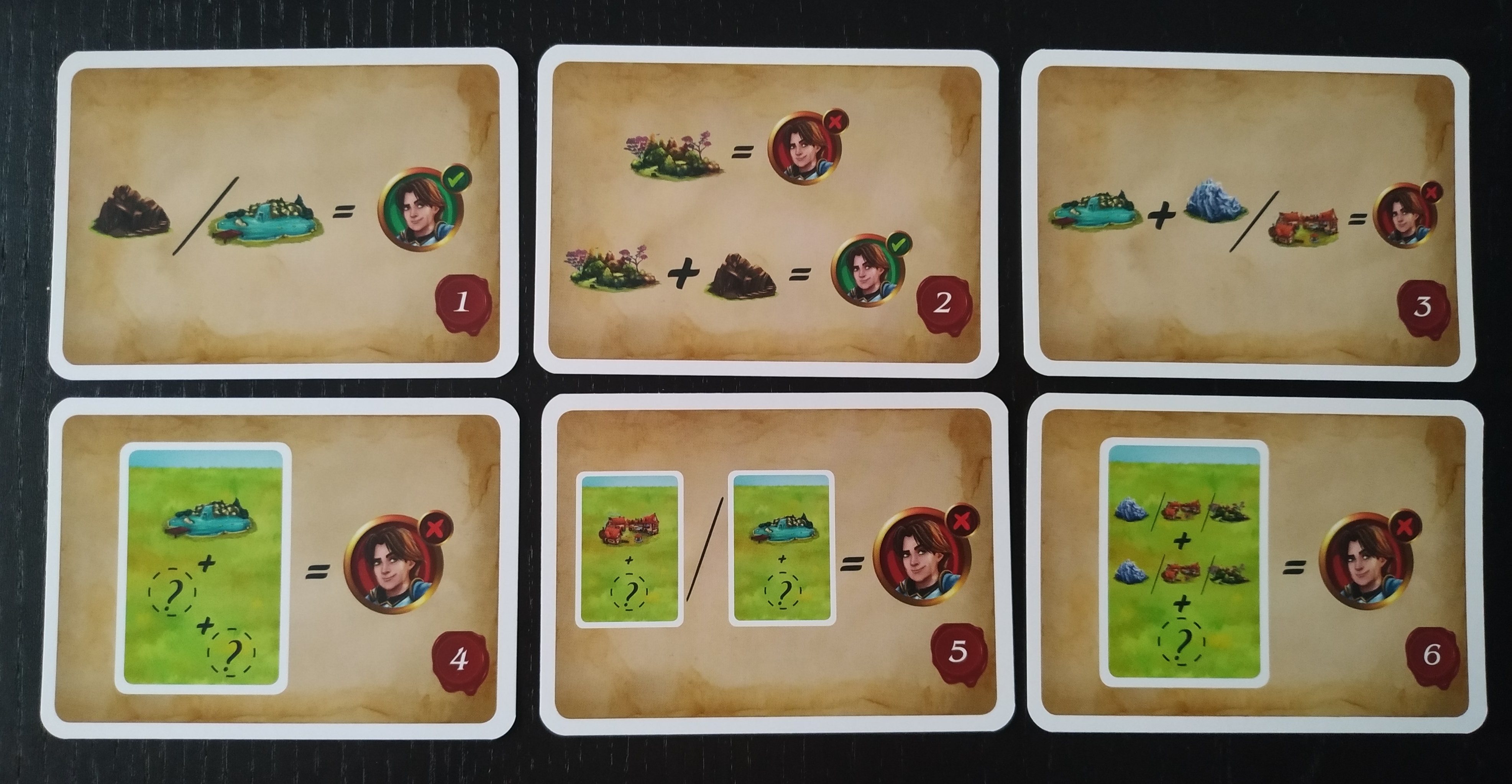 – Si decide no resolver, cambia la ficha de príncipe o princesa por dos aldeanos y las deja sobre la carta girada. Devolvemos la ficha de príncipe o princesa a la bolsa. Si no quedan aldeanos, debe resolver.
