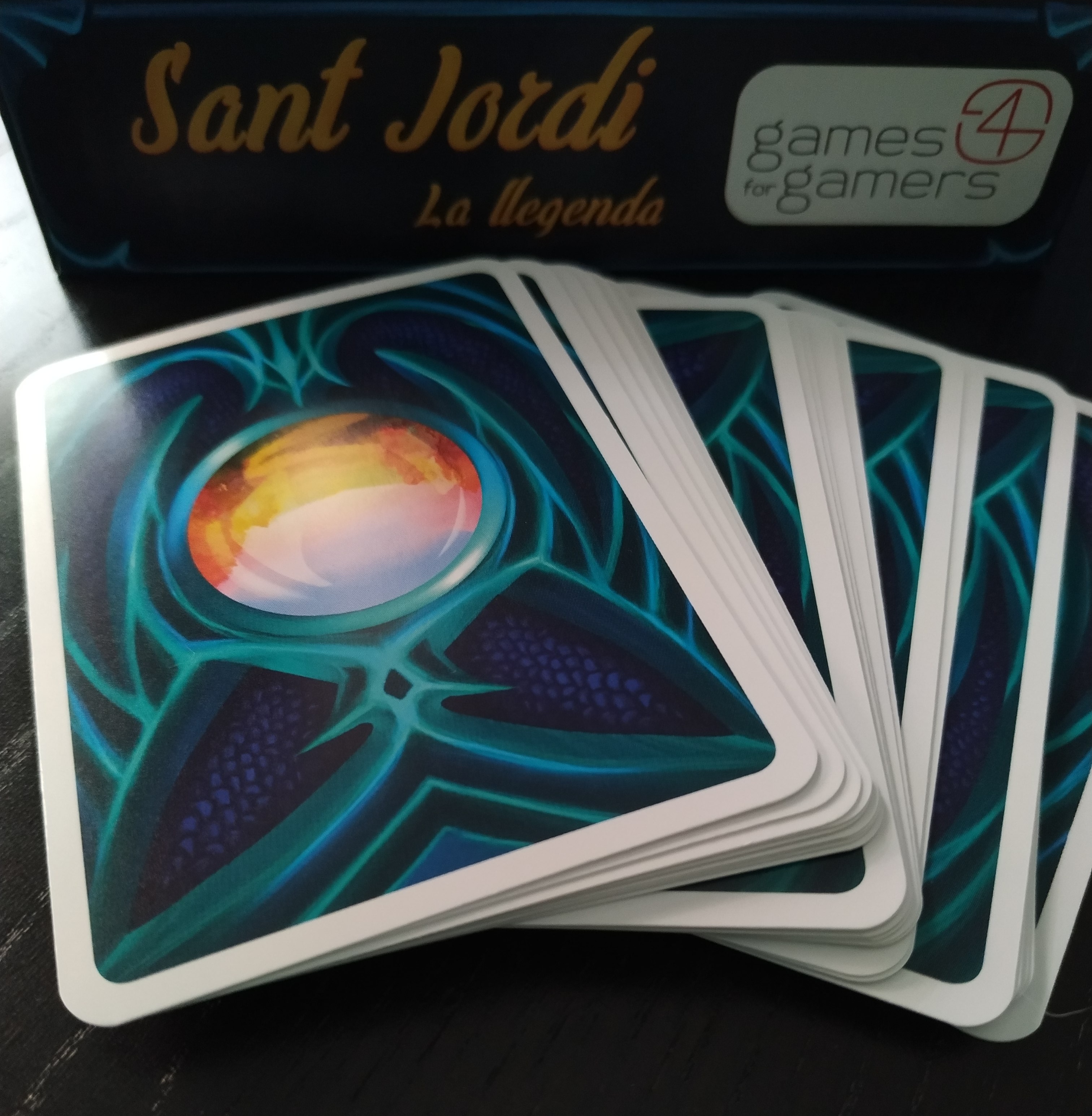 Sant Jordi: La llegenda es un juego de cartas muy sencillo para 2 jugadores con el que podremos revivir con un toque moderno y desenfadado la famosa leyenda en la que la villa de Montblanc estaba siendo aterrorizada por un dragón que pasó de comerse el ganado a comerse a los humanos, entre ellos la princesa, pero en el fatídico día que a ella le tocó su turno, apareció un caballero sobre un caballo blanco que arremetió contra el dragón y salvó a la princesa.