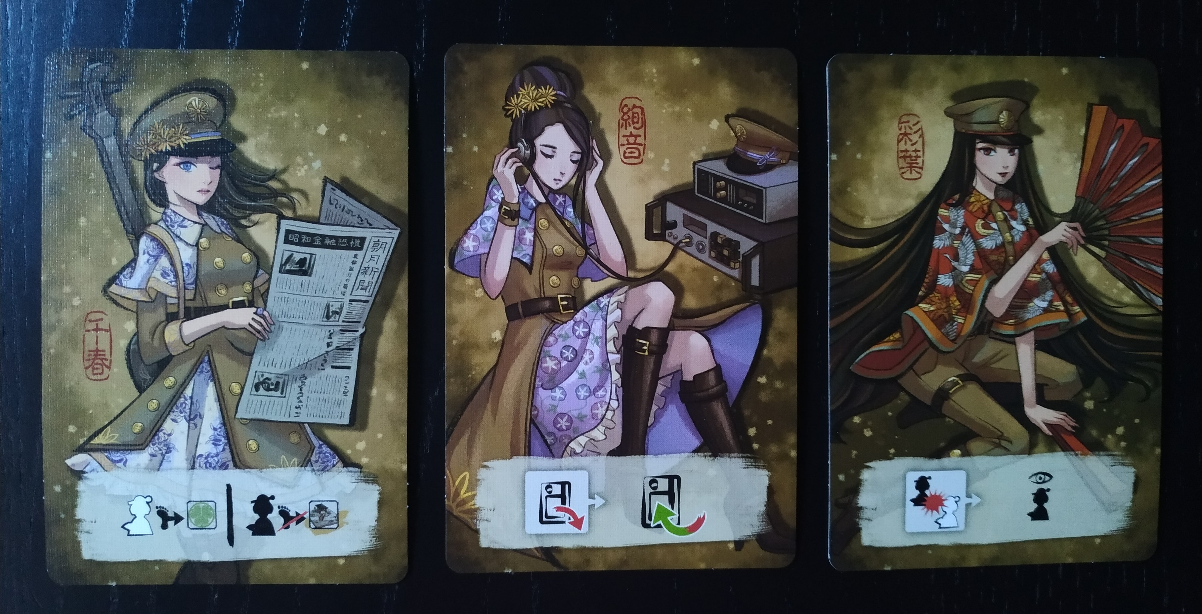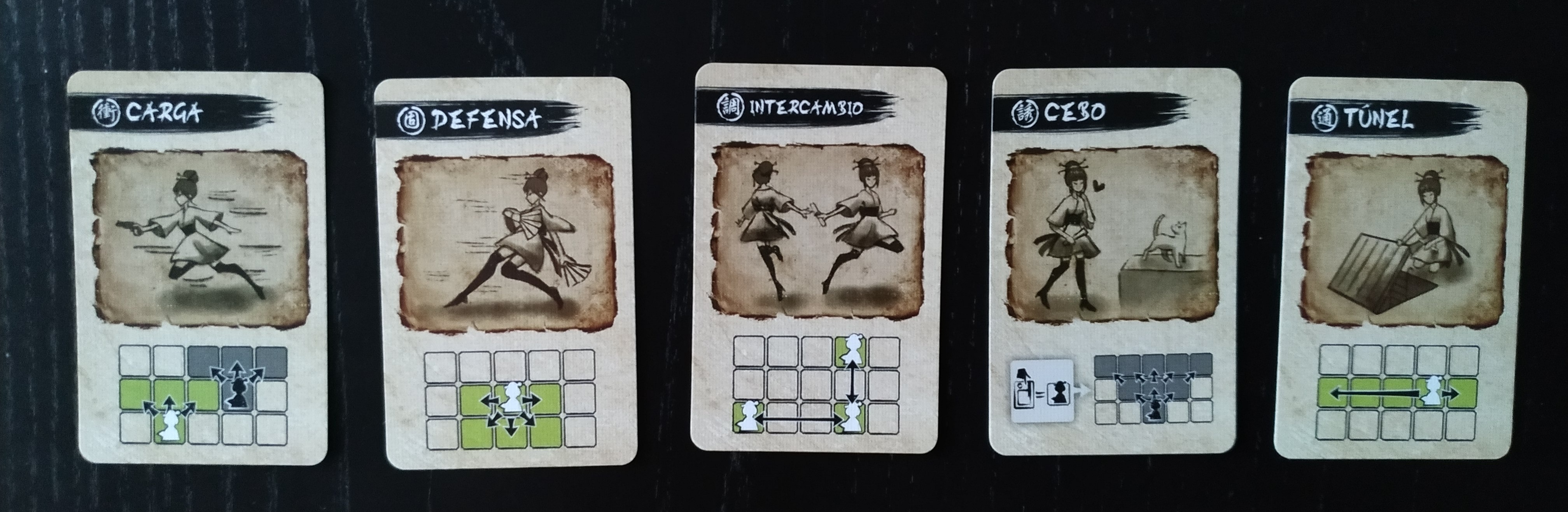 Es cierto que su mecánica principal bebe de los juegos del mismo tipo o clásicos como el Stratego, pero Shadows in Kyoto les da una vuelta de tuerca. En el Stratego solo había una forma de ganar y era encontrando la bandera del jugador rival escondida entre las diferentes fichas que estaban clasificadas con rangos militares. En cambio, aquí además de los diferentes niveles de poder de los agentes, estos pueden ser reales o no e incluso existen tres formas de ganar. Puedes optar por la forma clásica que es capturando a los dos agentes reales del rival, puedes intentar escapar con alguno de tus agentes reales por el final del tablero o puedes hacerte el despistado y dejarte capturar a 3 de tus agentes falsos. Esto hace que los jugadores tengan que estar pendientes de multitud de aspectos antes de decantarse por generar los conflictos y quieras hacerlo solo cuando lo tengas bastante claro así como replanificar constantemente tu estrategia a seguir en futuros turnos.
