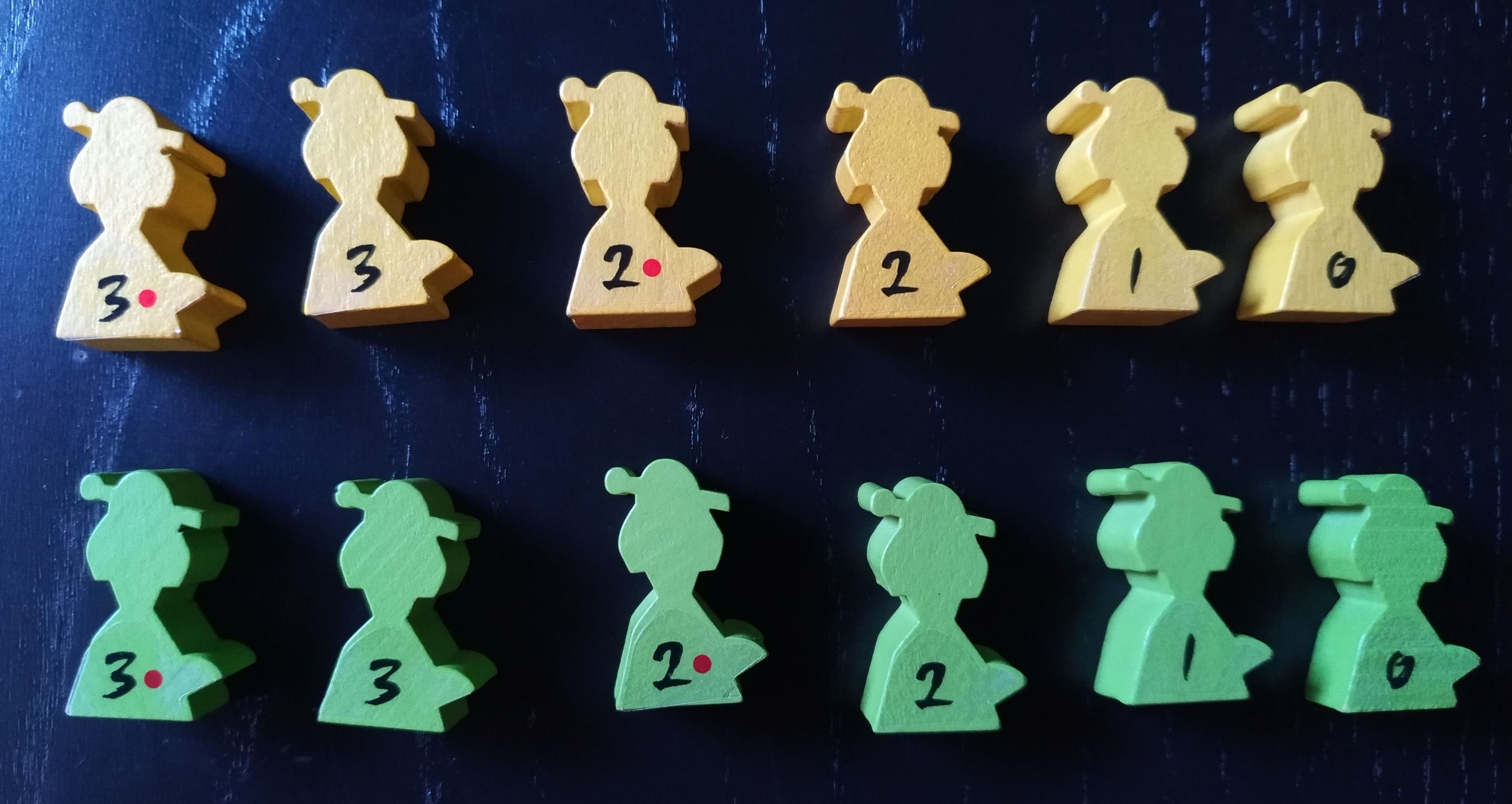 Por último, deben coger los 6 meeples (que representan a los espías) de su color y colocarlos en las ubicaciones con el símbolo de inicio en su territorio.