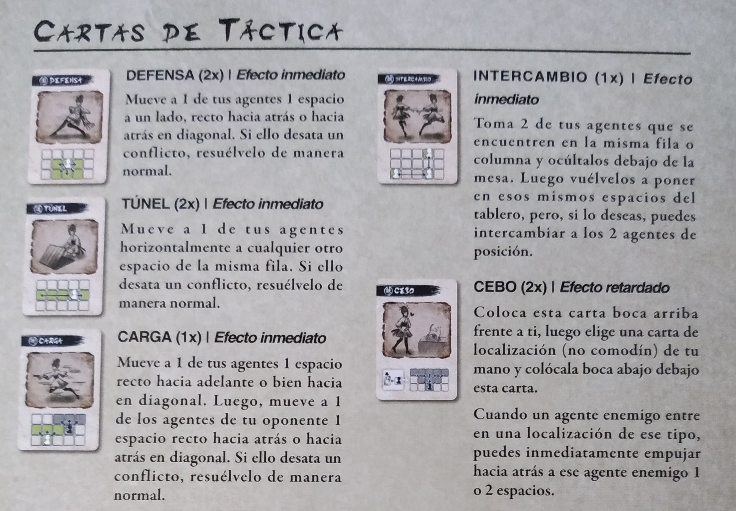 - Si se juega una carta de táctica se deben seguir las instrucciones que aparecen en ella: