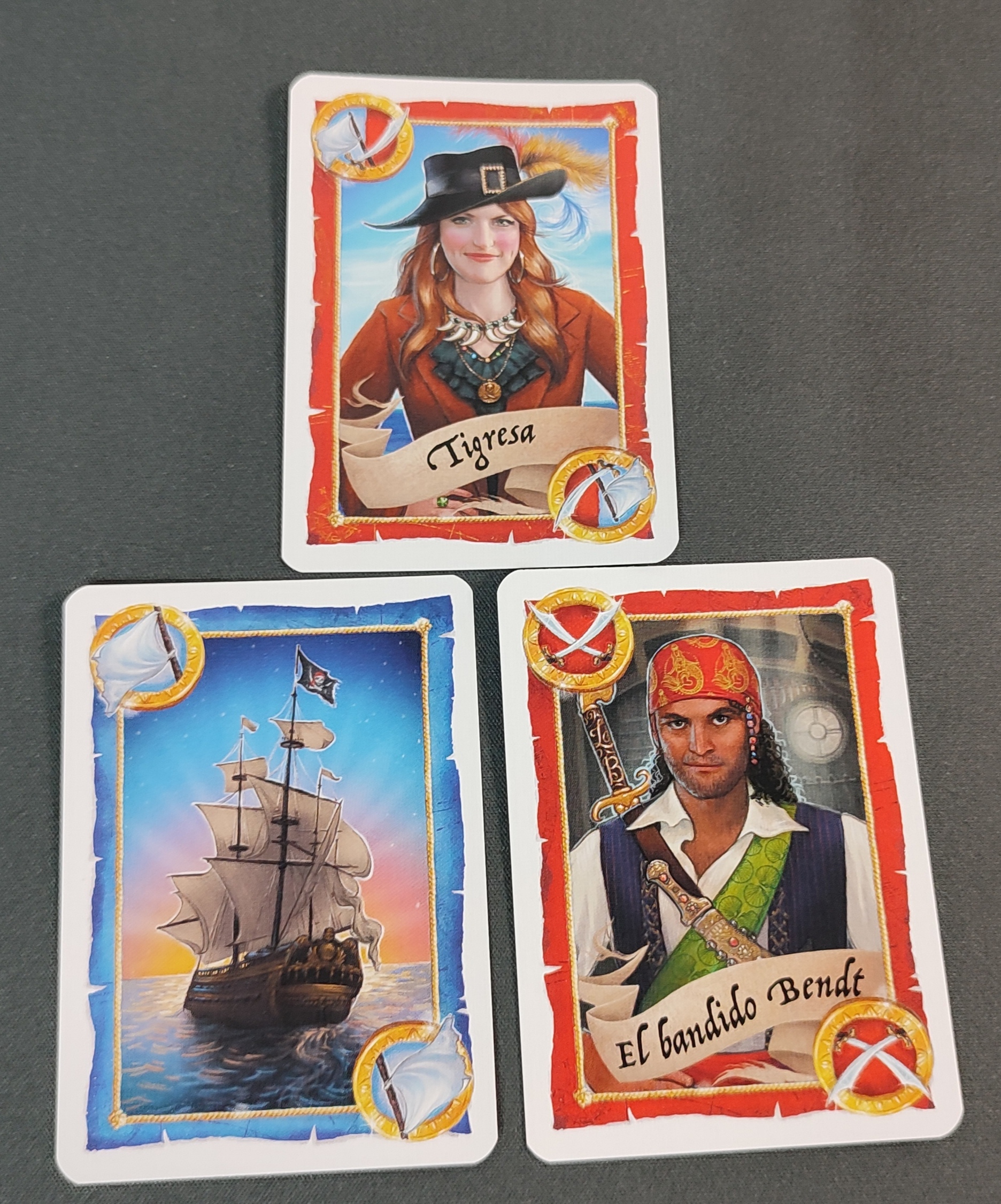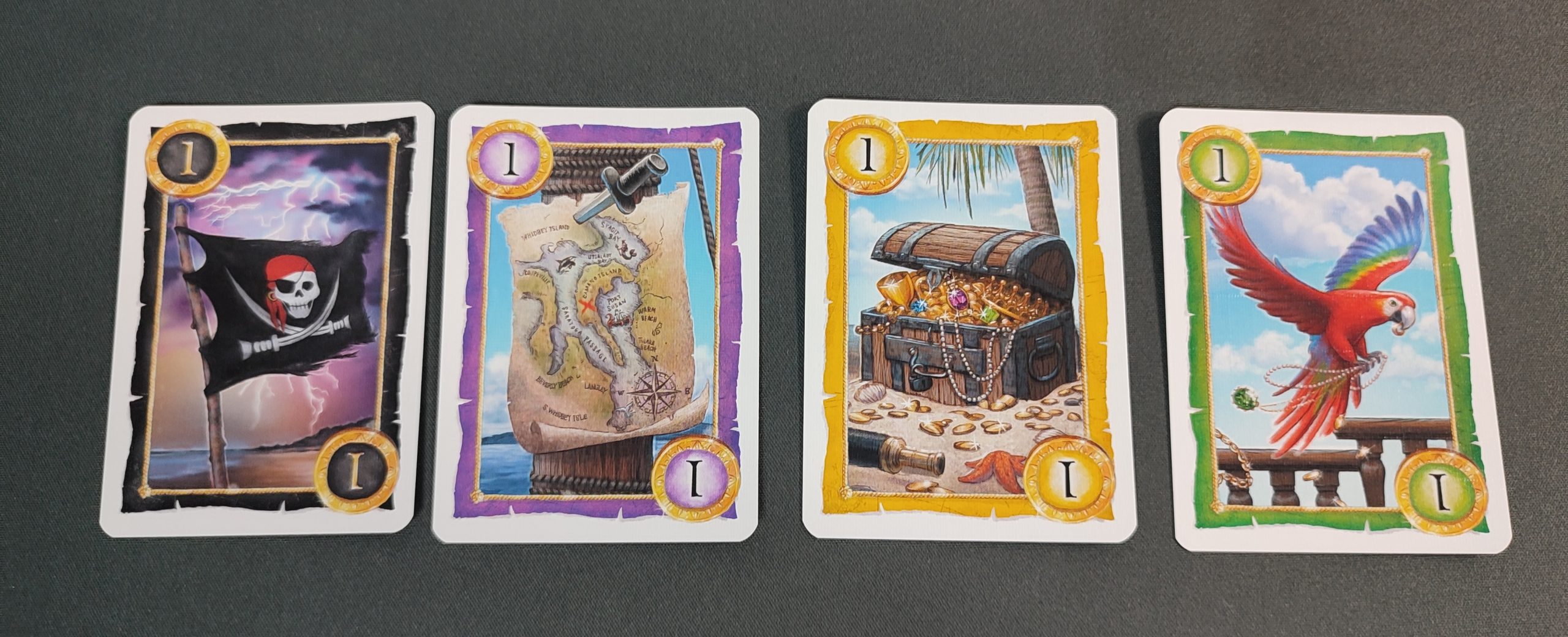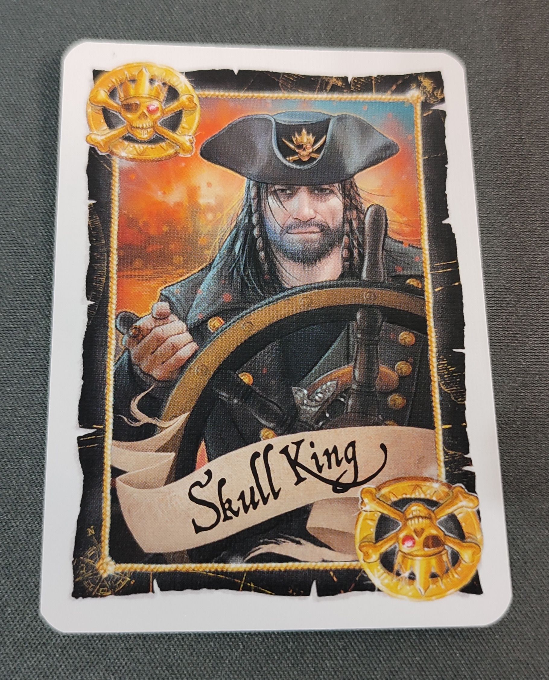 - Pirata: Supera a todas las cartas numeradas. Todos los piratas tienen el mismo rango por lo que si hay más de un pirata en una baza, ésta la gana el jugador que haya jugado el primer pirata.