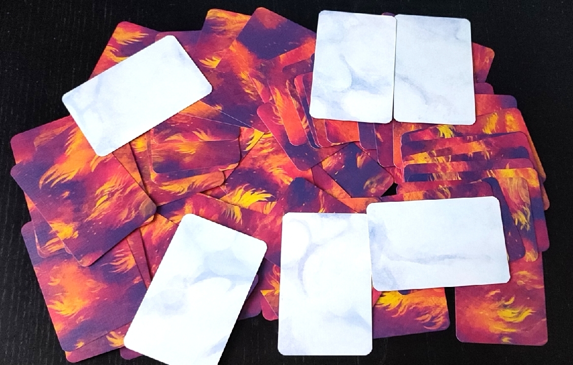 Dichas cartas vienen impresas a doble cara, pero en esta ocasión no se trata de un anverso y un reverso para jugar sino que ambos lados forman parte del juego. Nos muestran dos conceptos antagónicos: la nieve y el fuego.