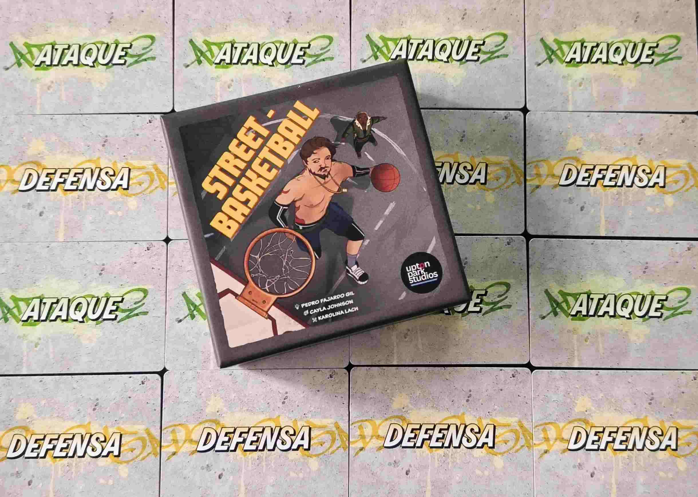 Cartas muy temáticas, una cancha modular, cubos de madera para marcar puntos y estados como las faltas o el on fire, además de balón y dado. Todo está pensado para que la experiencia se sienta como un pequeño partido de street basket sobre la mesa.