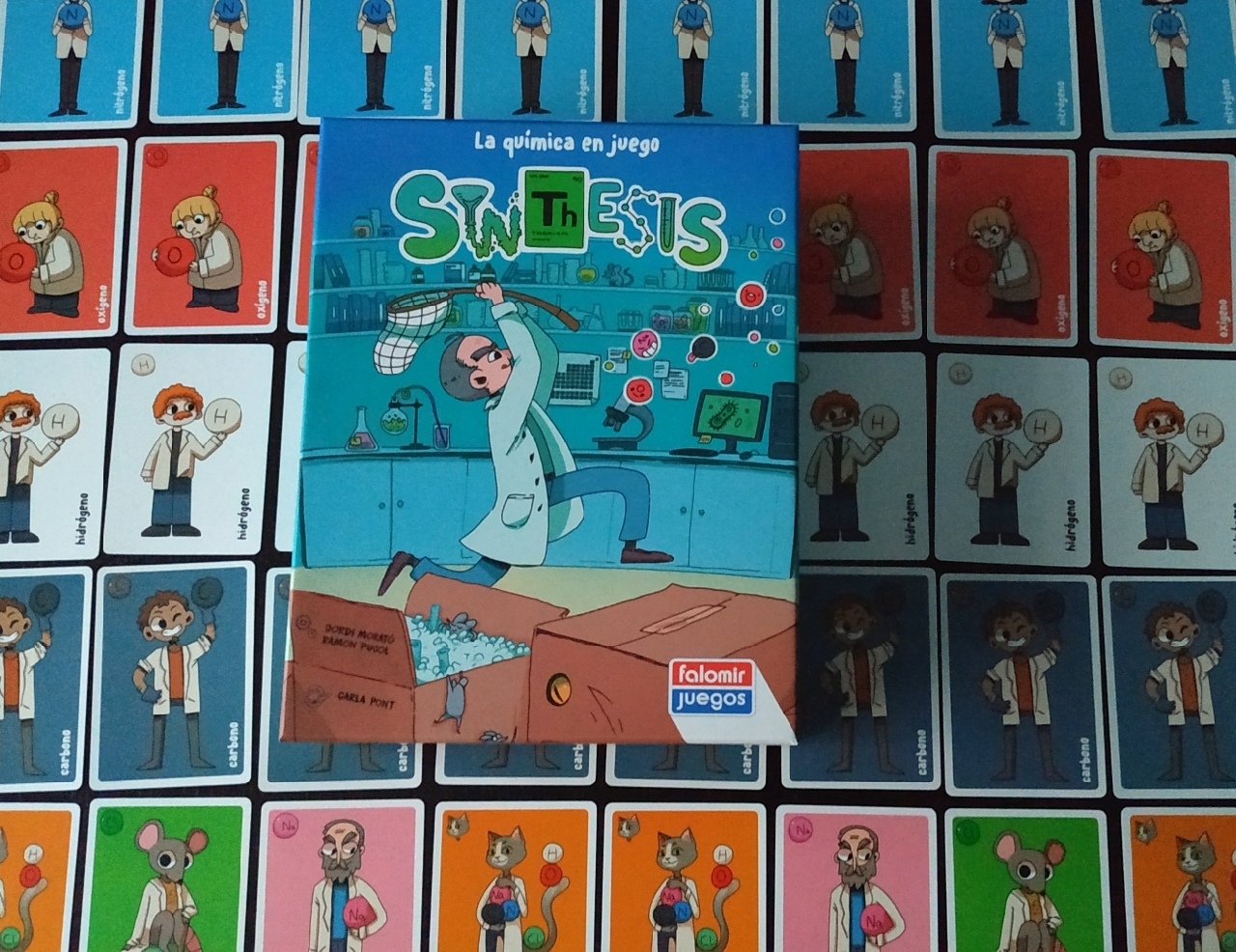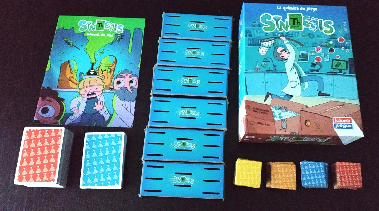Bienvenido a Synthesis, un juego creado por Jordi Morató y Ramón Pujol, ilustrado por Carla Pont y editado por Falomir Juegos y en el que la química hará saltar chispas entre los jugadores.