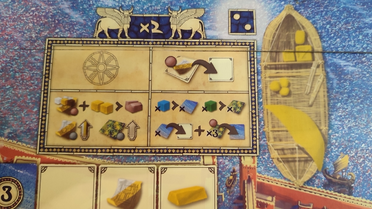 Es importante tener claro que en el juego, cada dado representa a uno de los cinco recursos que existen (además del oro que es un poco más especial y que, también hace las veces de comodín). Ahora bien, aquí viene la genialidad y la originalidad del juego: el valor del dado sirve para determinar en qué distrito el jugador tendrá que hacer las acciones de su próximo turno. Es decir, cuando llega el turno del jugador, lo primero que tendrá que hacer es coger uno de los dados del distrito en el que se encuentre sus figuras del arquitecto y asistente. El valor del dado que ha escogido indica a qué distrito se irán sus figuras para realizar las acciones el próximo turno.