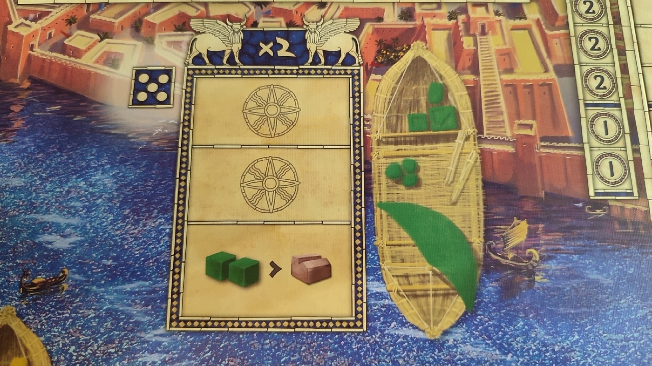 - El jugador volverá a lanzar y colocar los dados de recursos en la barcaza.