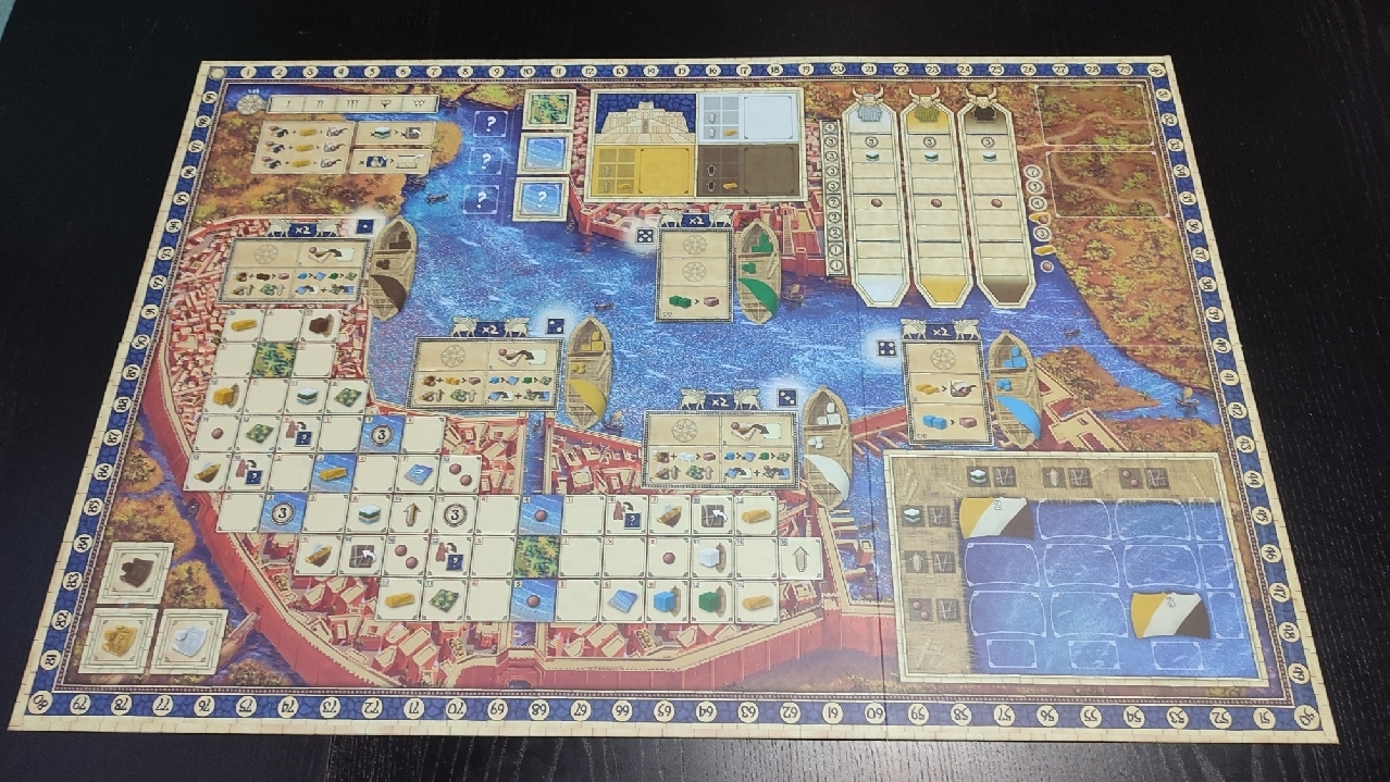 Los otros dos distritos son más especiales. Uno de ellos es el puerto, y es en el que los jugadores irán construyendo casas y consiguiendo losetas de embarcación para adquirir las bonificaciones que se encuentran allí.