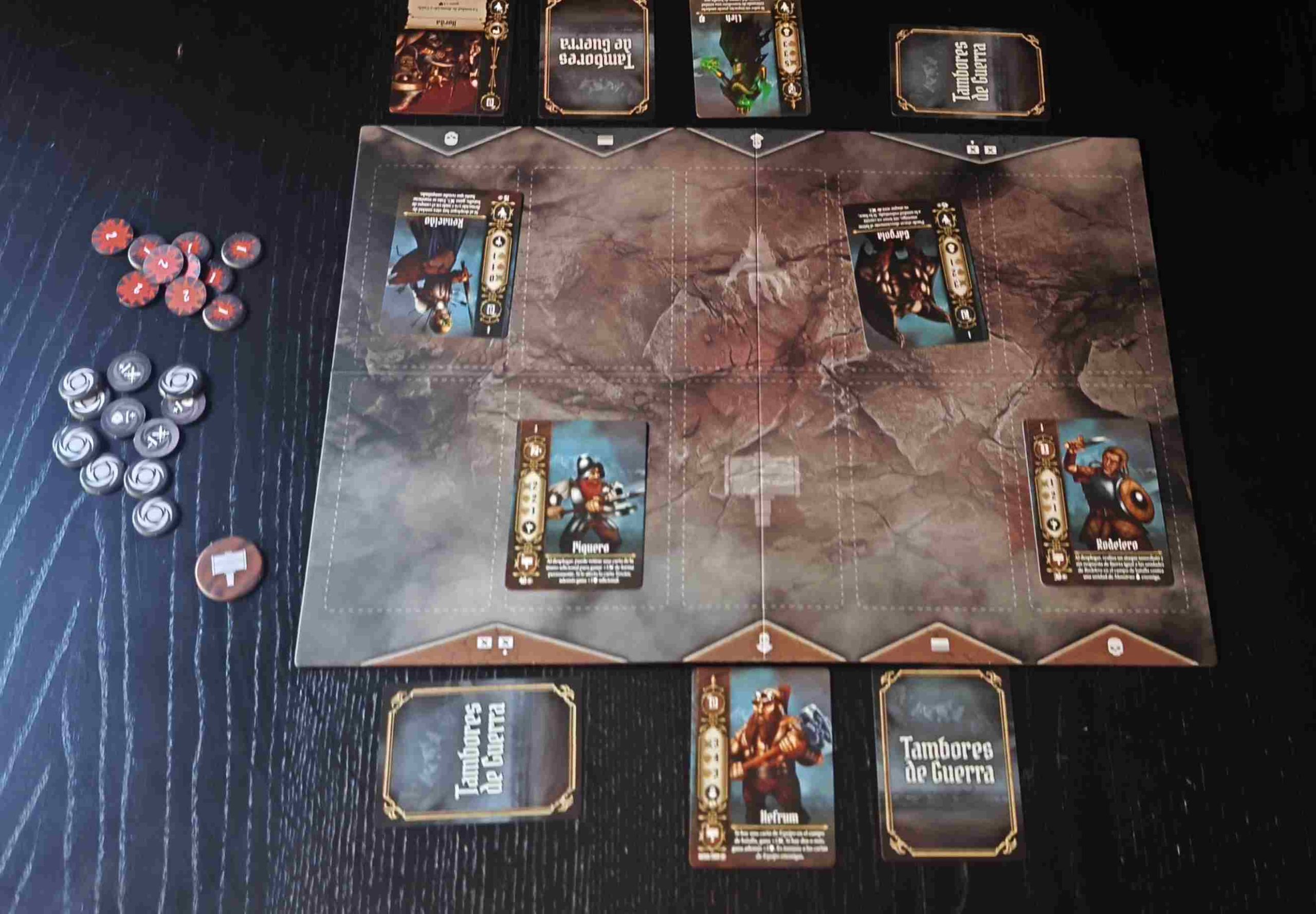 Juego independiente dentro de la saga Tambores de Guerra que enfrenta a los Enanos contra los Alzados en un campo de batalla de cartas. Cada jugador escoge uno de los bandos, elige un héroe líder y configura su mazo inicial. Las partidas se desarrollan en rondas con fases de despliegue, donde se jugarán las cartas en el tablero, posteriormente se resolverán los combates en los que las unidades atacan y reciben daño simultáneamente y, por último, una fase de reposición donde los jugadores vuelven a robar cinco cartas de su mazo.
