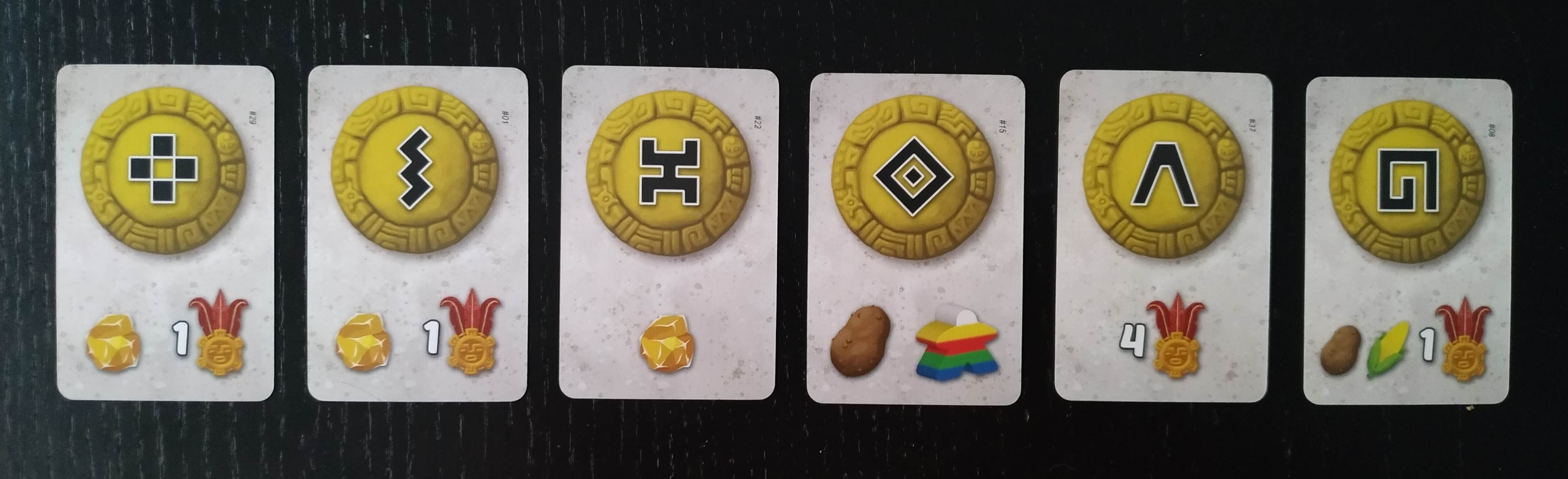 Llegar a buen puerto requerirá hacer acopio de recursos (existen cuatro tipos: las patatas, el maíz, la piedra y el oro, funcionando este último como comodín) para poder ejecutar de forma efectiva las distintas acciones disponibles.