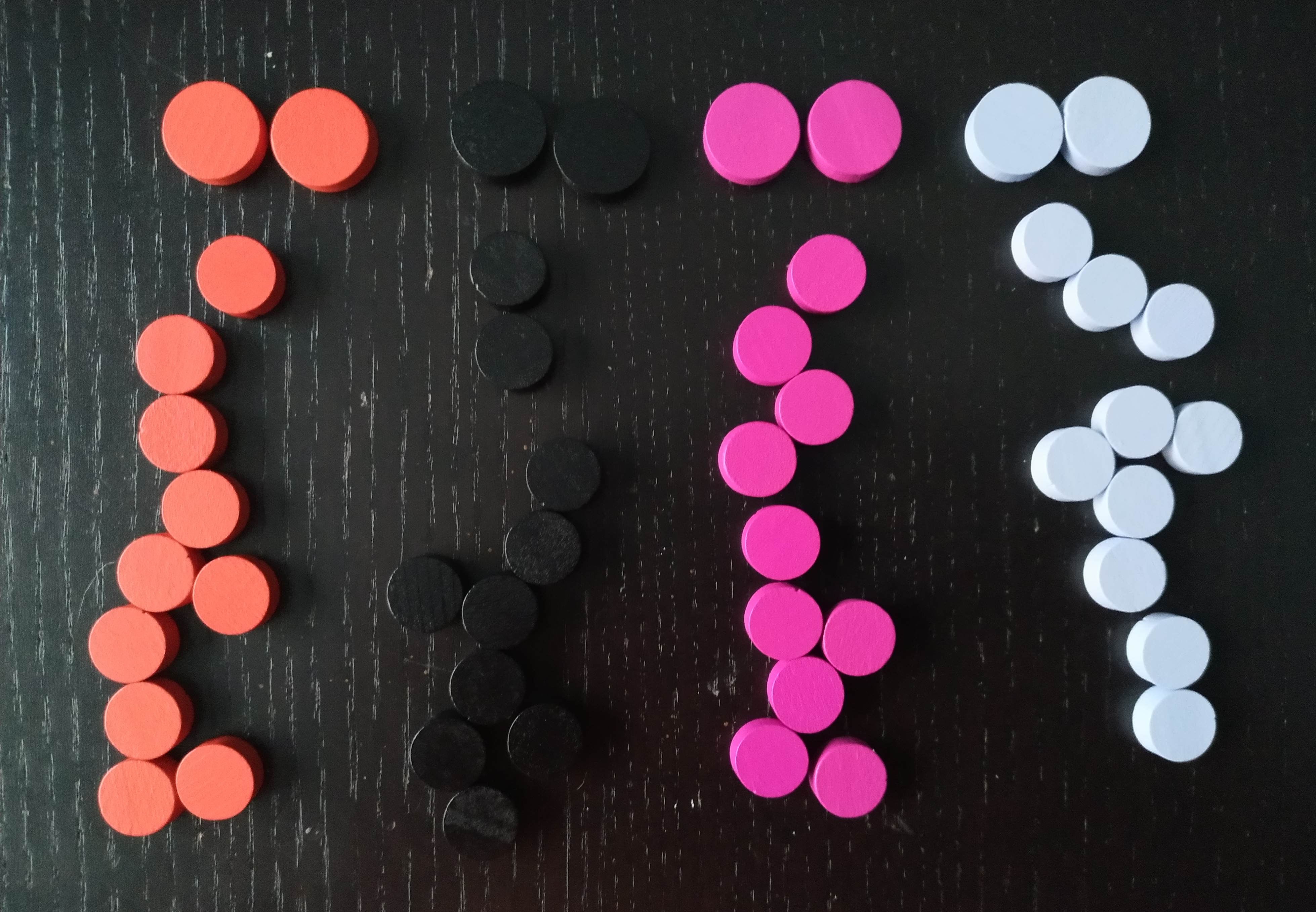 En cambio, los discos más pequeños se utilizan para marcar las conquistas de los jugadores. En cada festival el jugador que más conquistas haya marcado en cada región obtendrá una cantidad de puntos igual al número de bajas acumuladas en el espacio correspondiente.