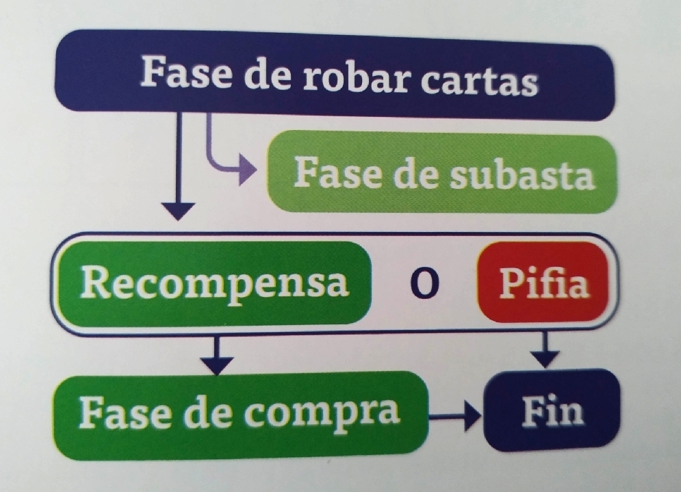Si esto sucede, dejaremos todas las cartas de número en el mercado, cogeremos una ficha de pifia que equivale a 3 monedas, los demás cogerán monedas por el valor de las cartas de moneda y pasaremos el turno.