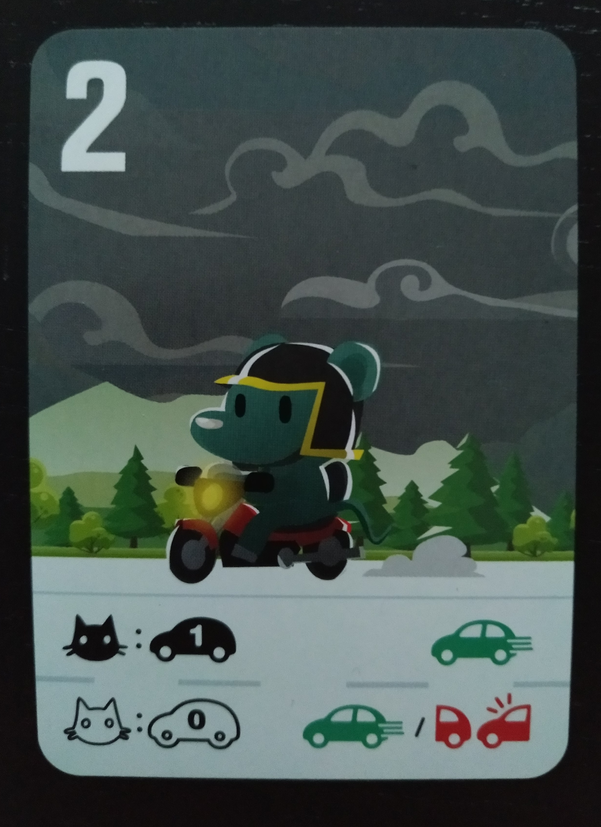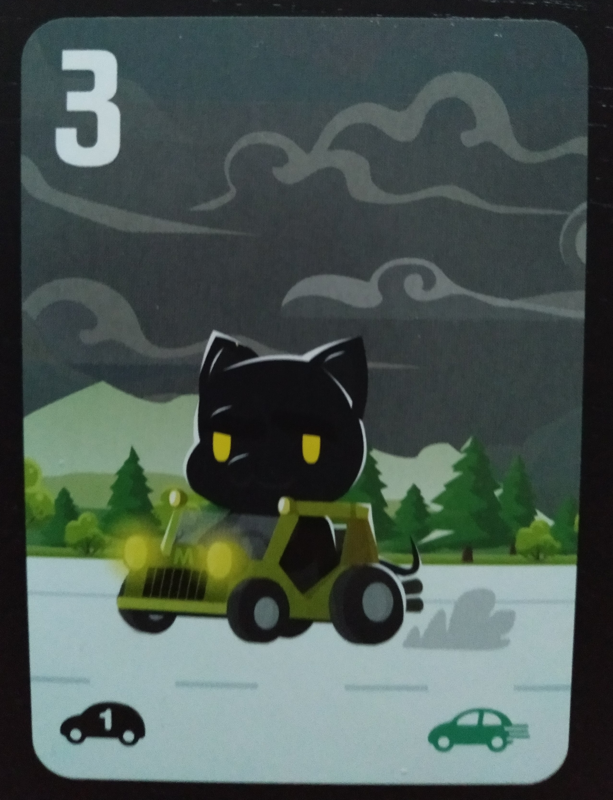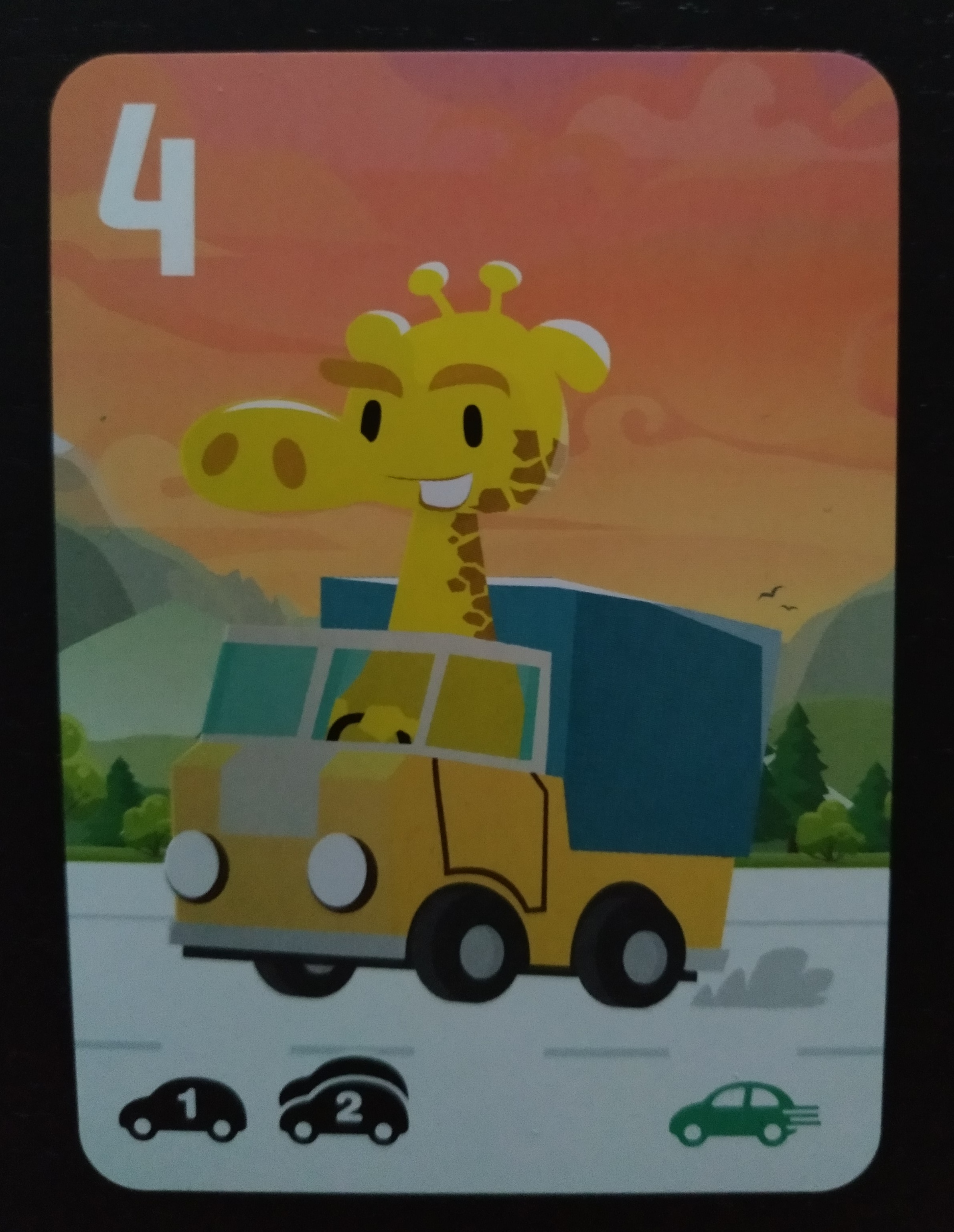 - La carta que será el vehículo en el que viajará cada jugador y con la que puntuaremos. Deberemos dejar nuestra ficha encima de ella.