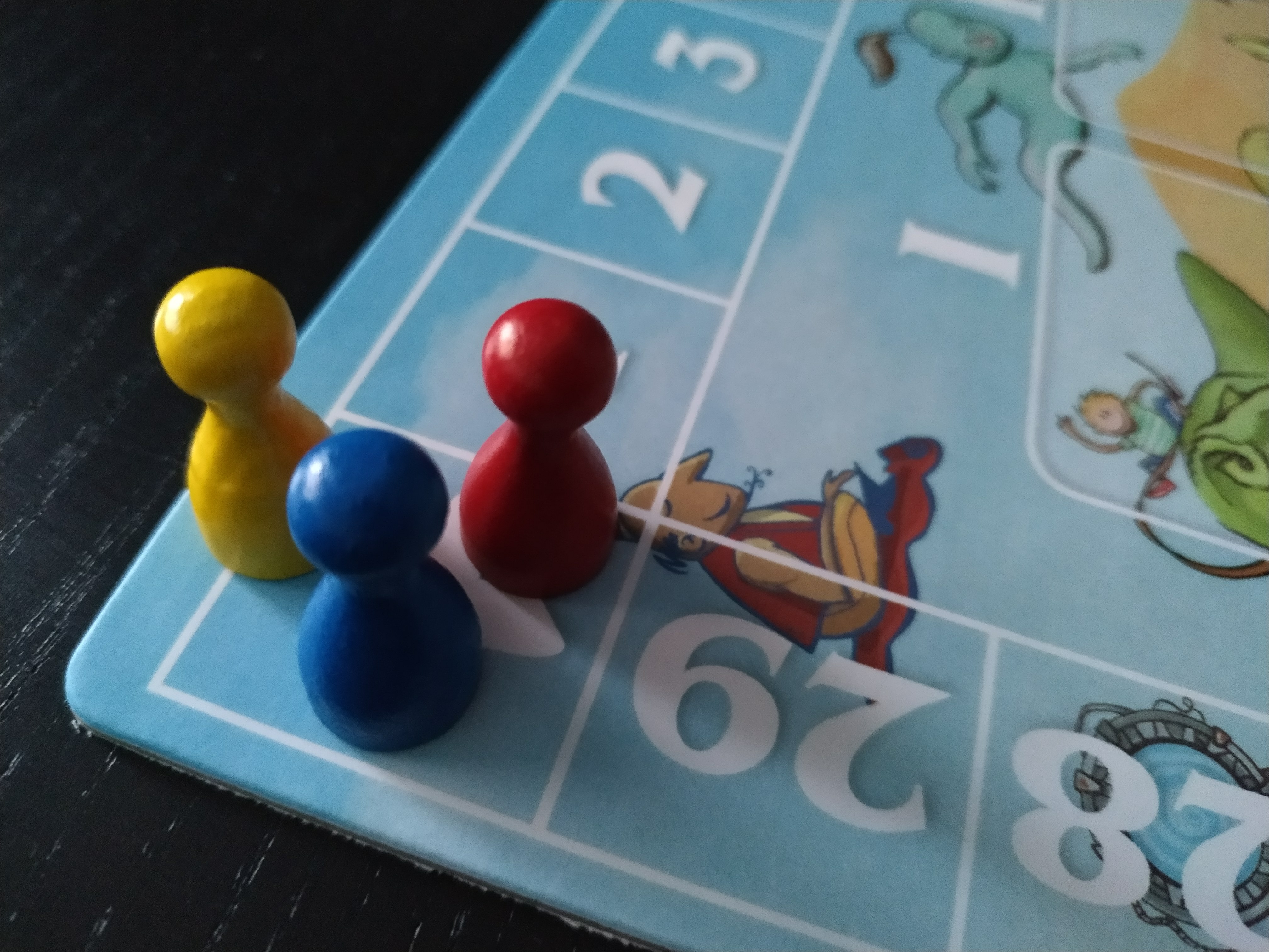Pondremos los meeples de todos los jugadores en la casilla de cero puntos del tablero representada con un meeple y, tras elegir al azar al jugador inicial, cogerá la carta de turno que tiene un dibujo de una lámpara.