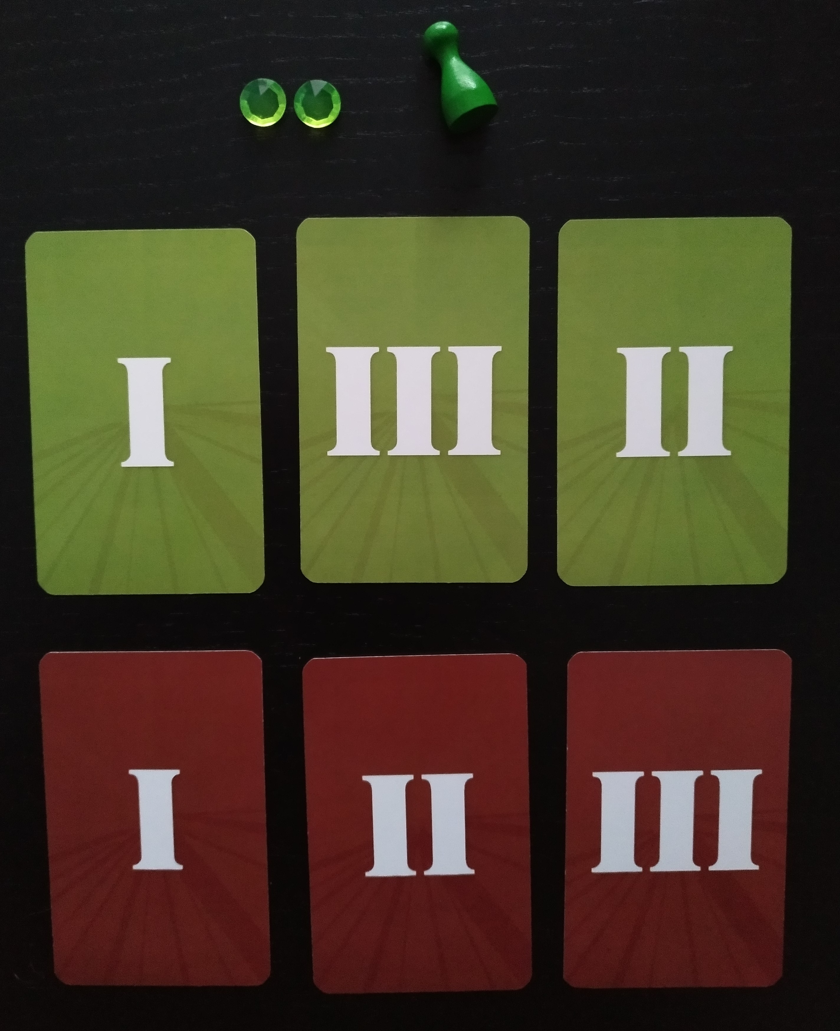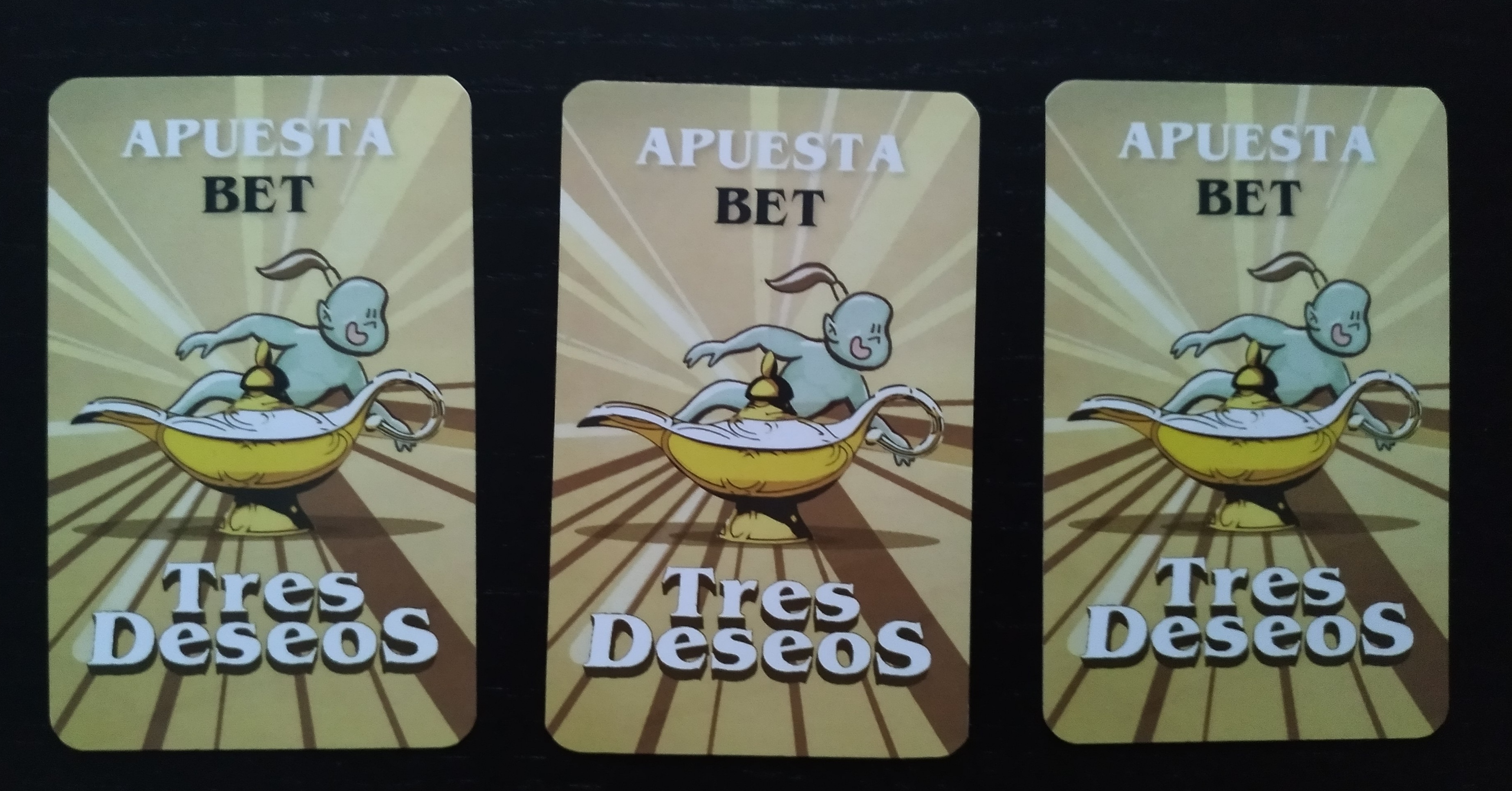 - 6 cartas de apuestas: una roja y una verde de los deseos I, II y III.