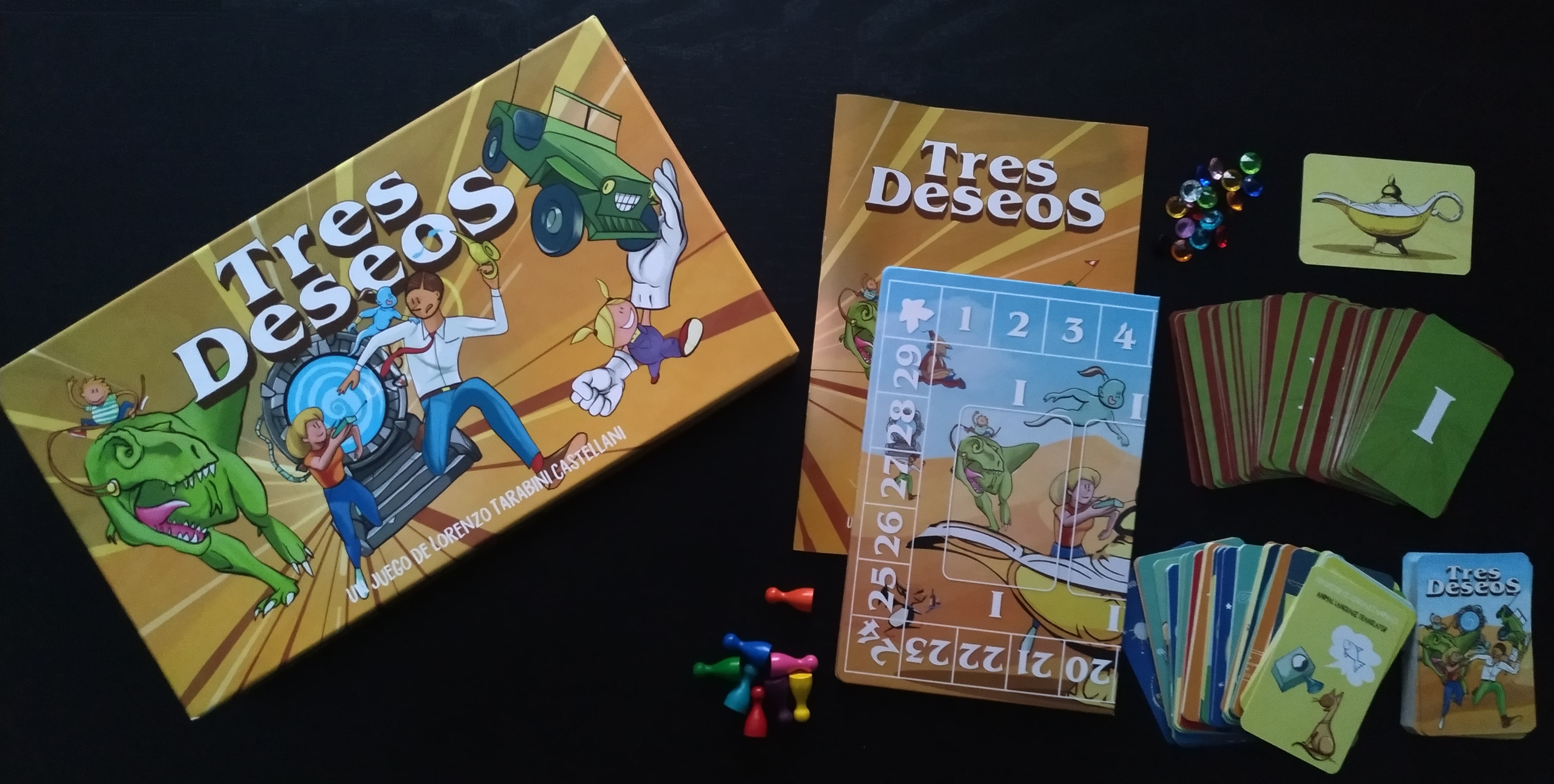 Tres Deseos, un juego de intuición creado por Lorenzo Tarabini y diseñado por Pablo de la Cruz que nos hará conocer mejor a las personas con las que juguemos porque tenemos que pensar en sus gustos e intentar adivinar sus sentimientos respecto a los deseos que le podría conceder el Genio de la lámpara.