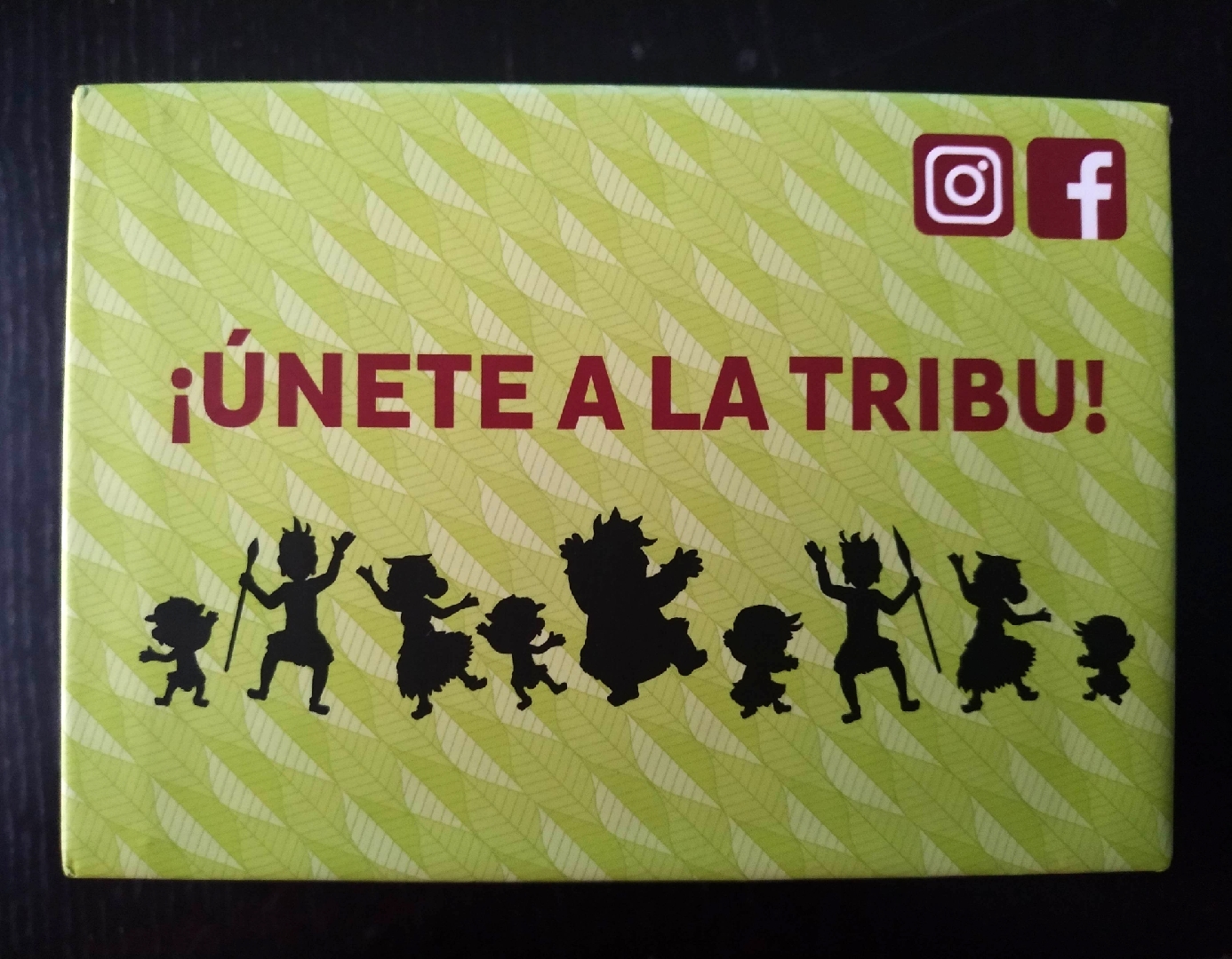 Sobre un fondo verde lima tenemos en grande el nombre con una ilustración muy detallista que incluye a los miembros de una tribu ataviados para la ocasión y atentos a una mesa donde están las cartas. No podemos dejar de mencionar que en todos los lados del cubo hay detalles que no pasan desapercibidos como siluetas de dichos miembros de tribu, una frase que hace reflexionar y un llamamiento a unirnos a la tribu.