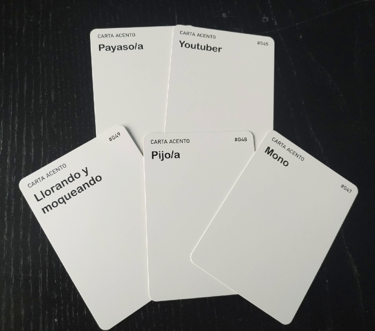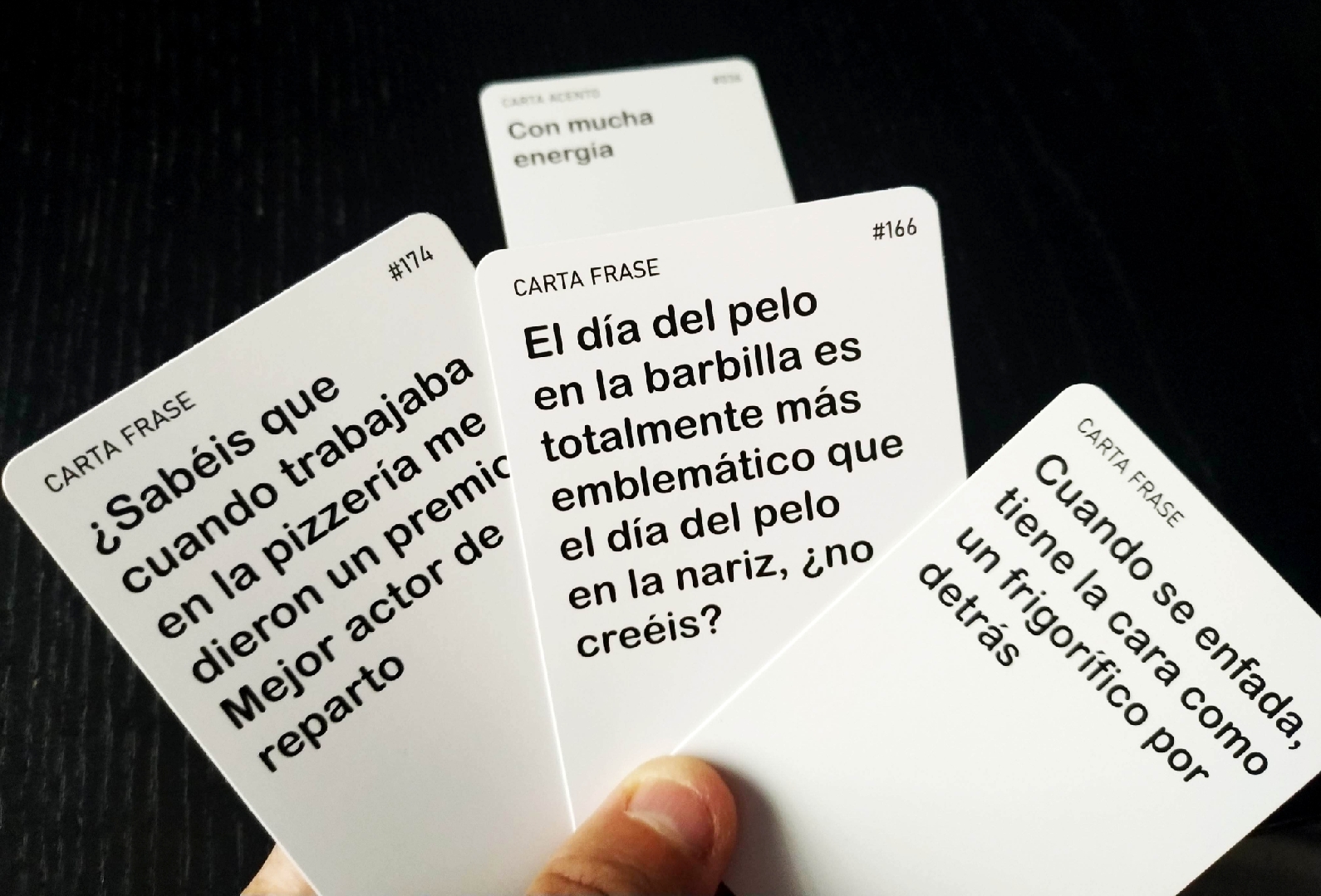 Tras eso, cada uno de los jugadores deberá leer una de sus cartas de la mano, la que considere más graciosa, imitando el acento de la carta que ha enseñado el jefe.