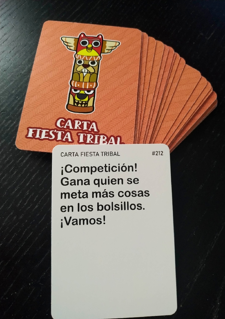 Ese será el nuevo jefe de la ronda y sacará una carta de fiesta tribal para leerla en alto. Estas cartas contienen acciones colectivas o individuales por lo que cuando las saquemos, o las haremos entre todos o el jefe decidirá quien debe ejecutarla.