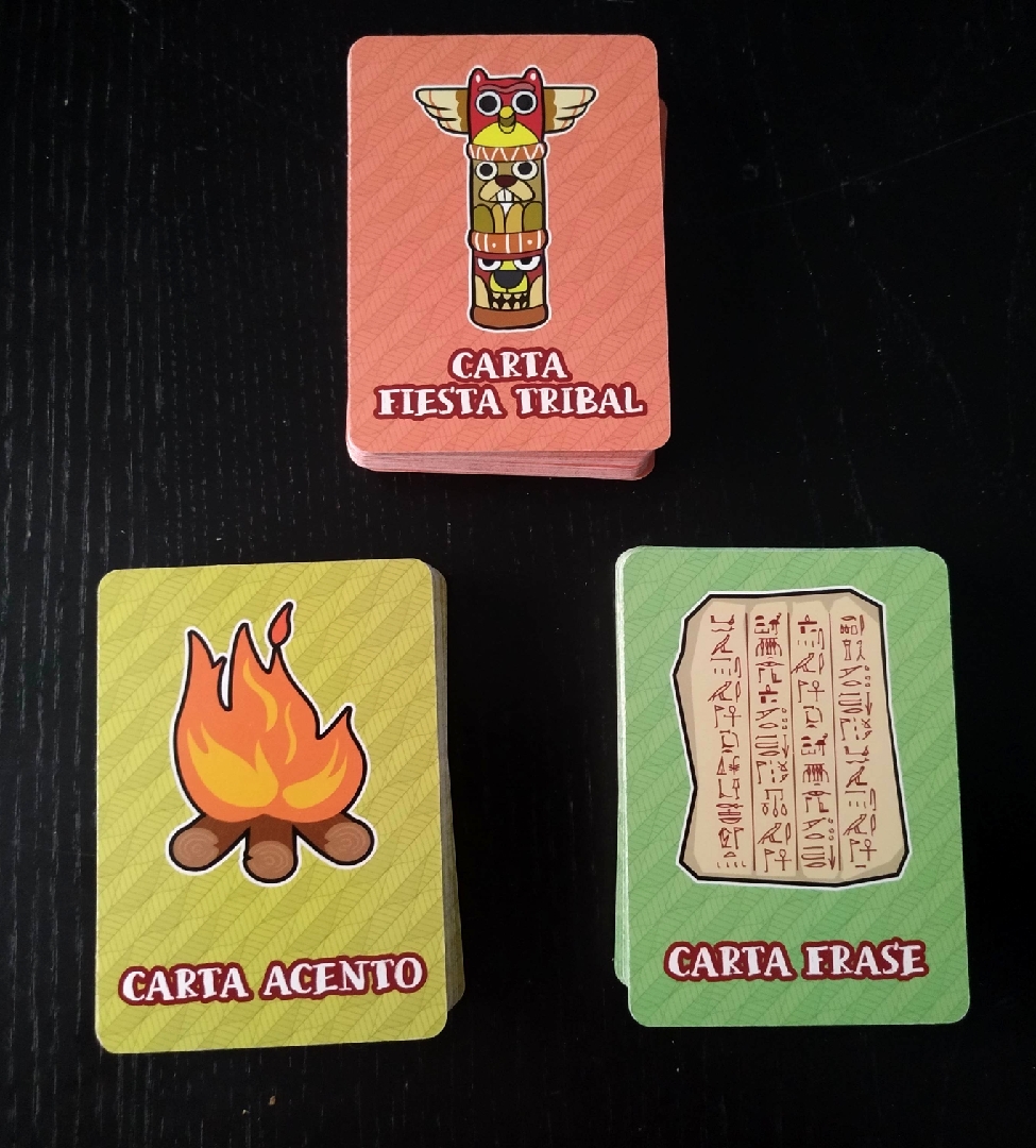 Empezaremos dividiendo las cartas en 3 categorías: Fiesta tribal, acento y frase.