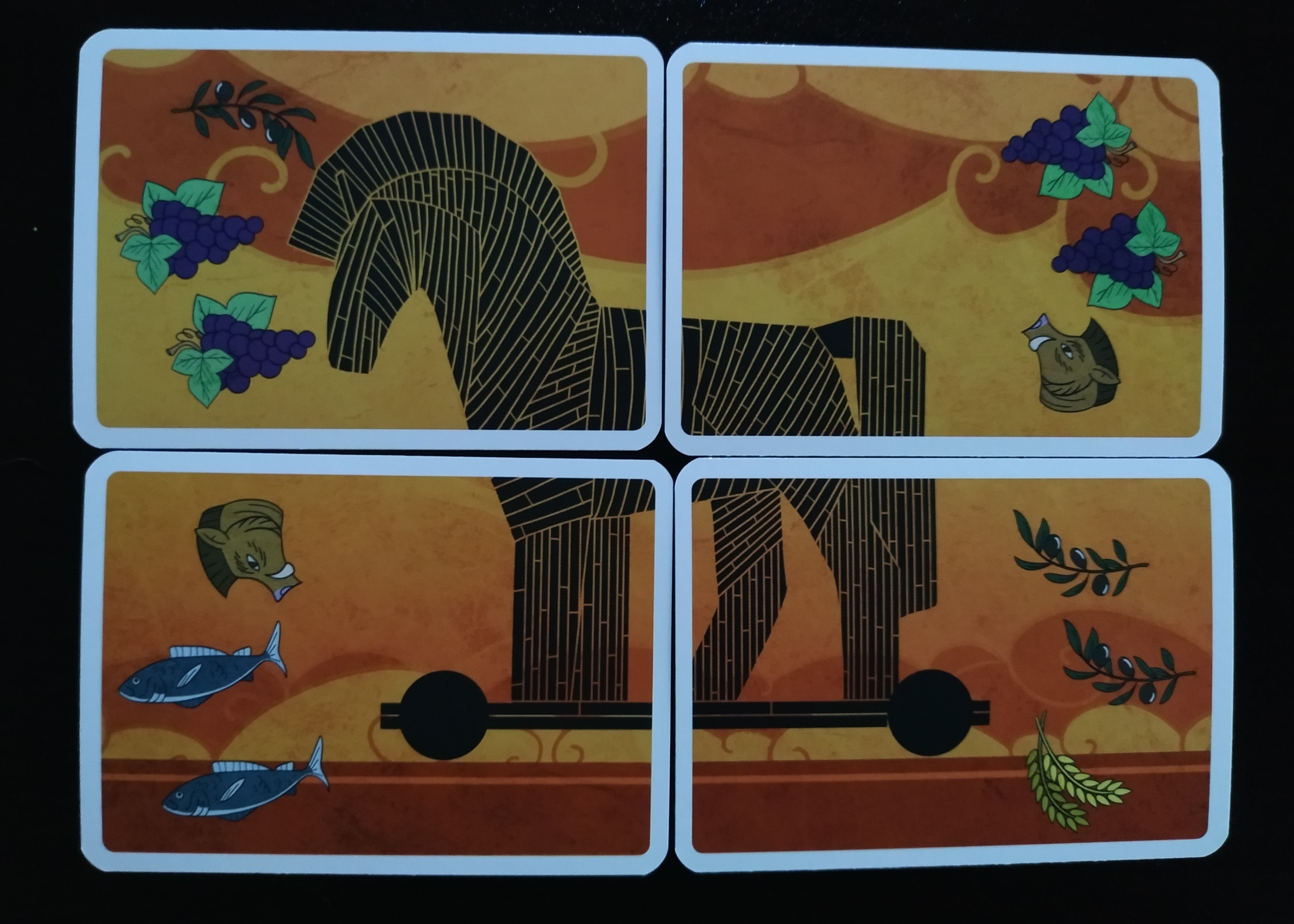 Si es el turno del jugador griego, podrá bajar una carta que contenga una de las partes del caballo que aún no haya construido.
