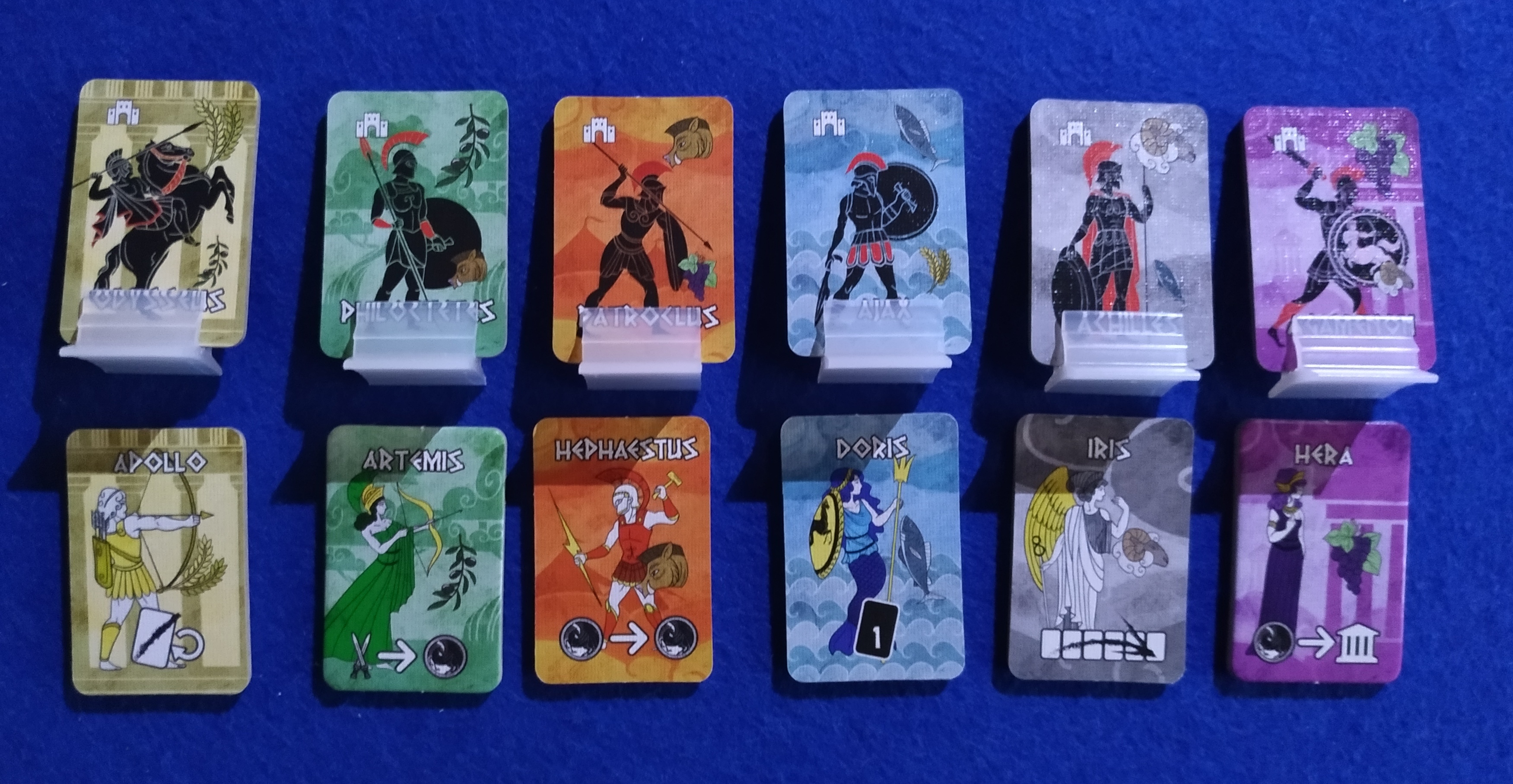 Otro aspecto importante del juego es su rejugabilidad. Gracias a que tenemos diferentes fichas de Dioses, que a su vez tienen doble cara, que tienen diferentes habilidades hacen que cada partida sea diferente una de otra. En total existen doce diferentes que, combinados entre sí, crean posibilidades infinitas.
