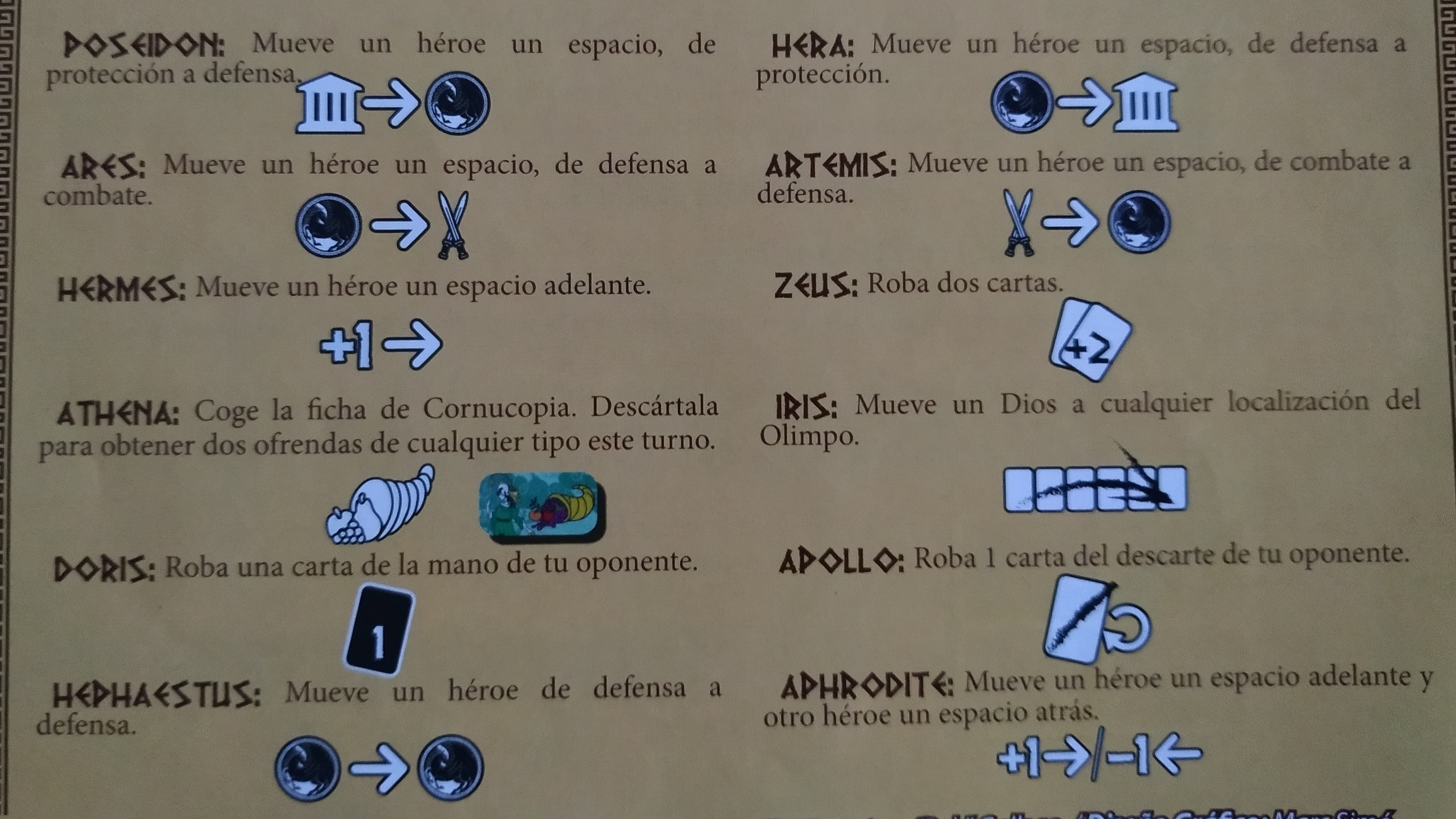 Por tanto, será antes de cada turno donde tomemos la decisión que lo marcará todo: ofrendar o robar dos cartas. Con la primera tendremos que elegir un Dios teniendo en cuenta al menos tres factores importantes: el héroe que queremos mover, el poder del que queremos beneficiarnos y los recursos que podamos ofrecer.