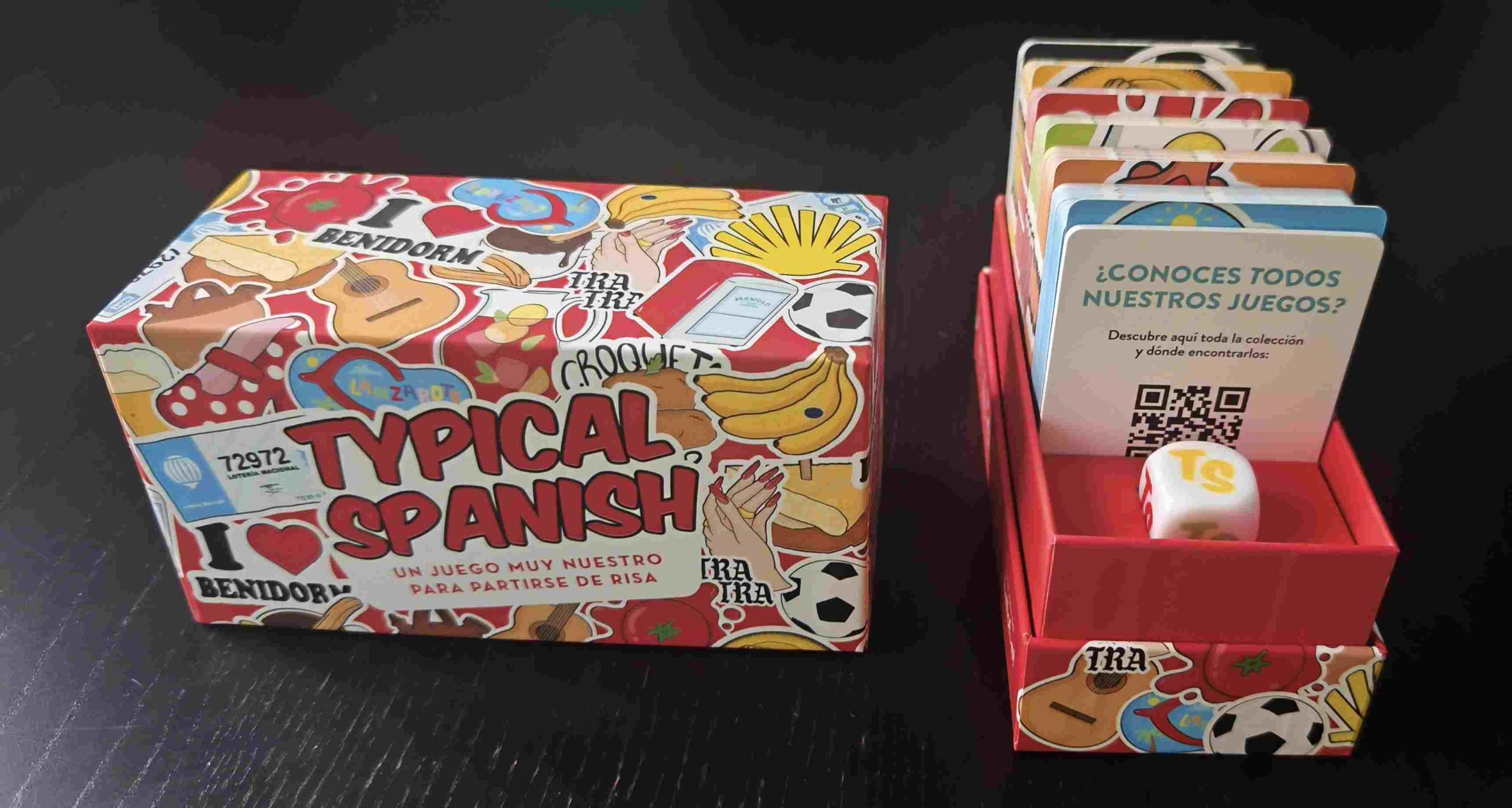 Typical Spanish es un party game familiar basado en la cultura española más gamberra, donde los jugadores se dividen en equipos para superar pruebas de lo más variadas: imitar, dibujar, hacer mímica, responder preguntas o adivinar expresiones típicas españolas.