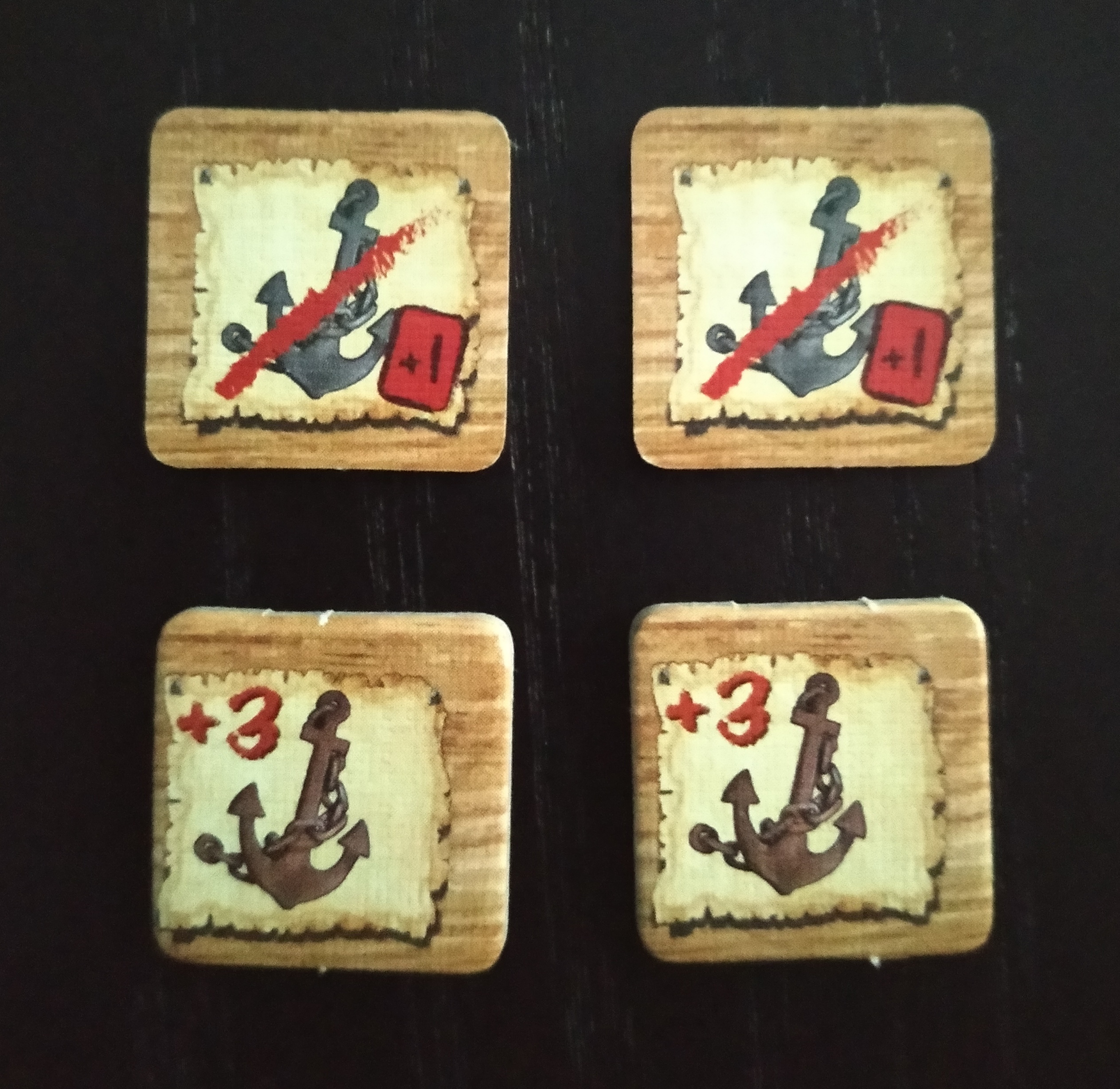 Si en nuestro turno no podemos jugar cartas de movimiento porque hay prohibiciones o añadir una nueva prohibición que no puede coincidir con las ya bajadas hasta el momento, deberemos dar la vuelta a una de las tres anclas que tenemos.