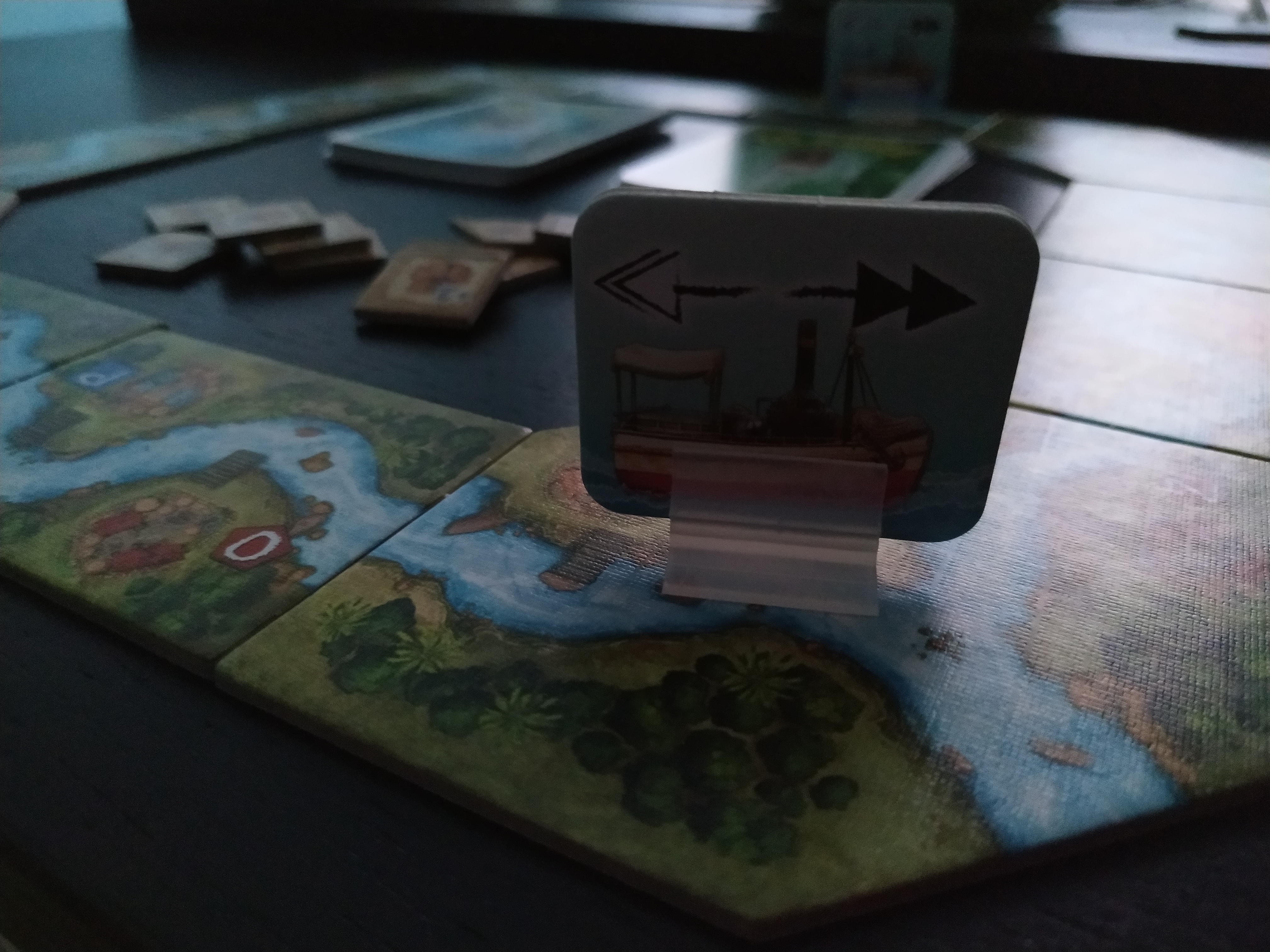 Nos ha recordado a otros juegos tipo de carreras en el que tienes que ir moviendo, en este caso un barco, para llegar a la meta, que serían los puertos de las cartas que tienes en la mano. Pero, lo bueno es que, en Ulanga, vemos otros factores que influyen en nuestro recorrido y en el de los demás, dando más «intringulis» a las partidas.