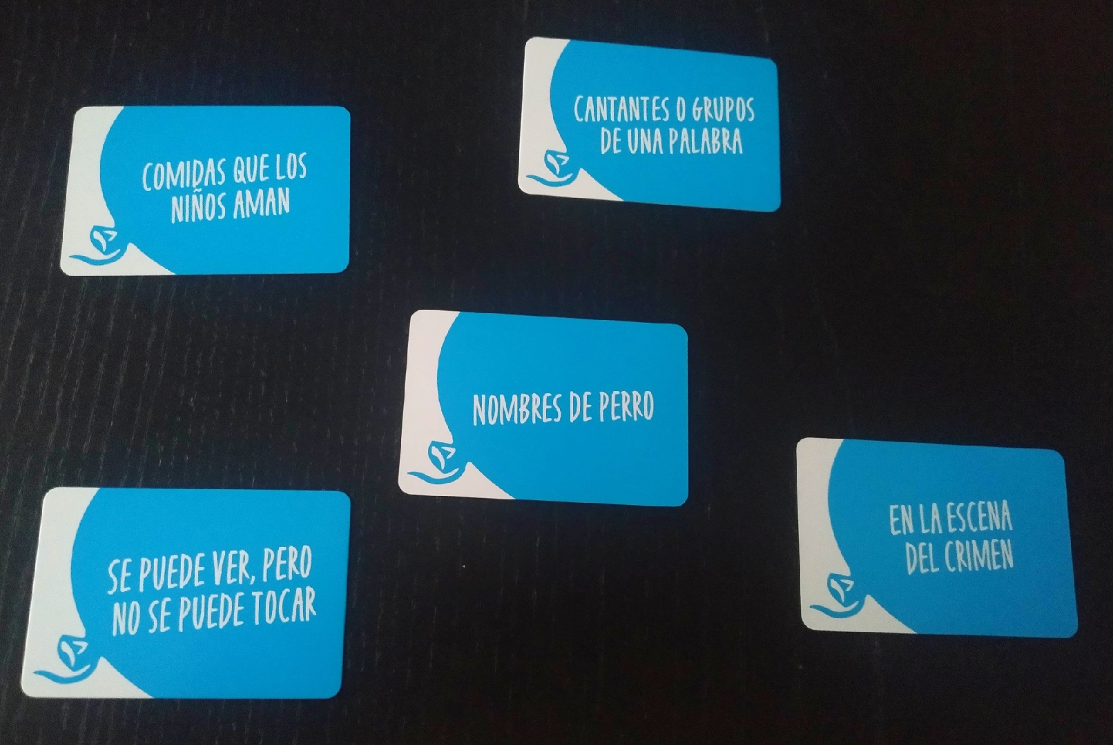Los parecidos son que estamos prácticamente ante el mismo juego en el que, como ya sabéis, tenemos que intentar coincidir en las palabras que hemos escrito en nuestra pizarra con las que hayan escrito el resto de jugadores. Todas deberán estar relacionadas con lo que haya salido en la tarjeta.