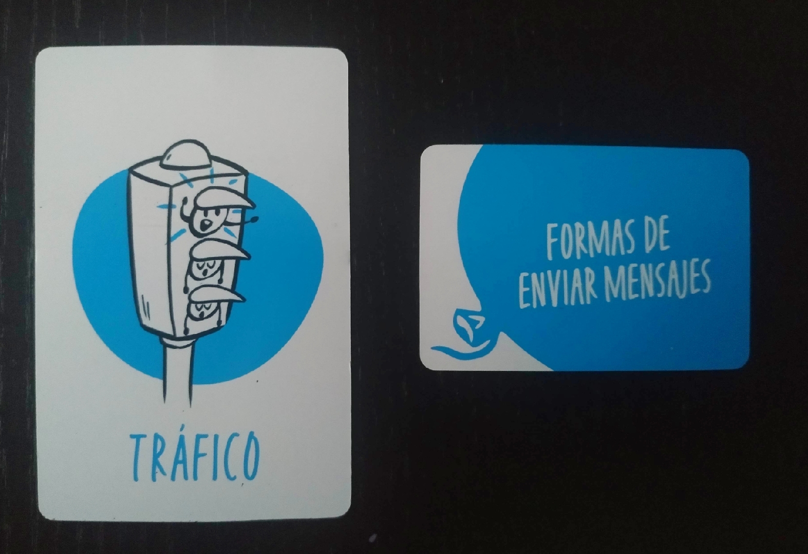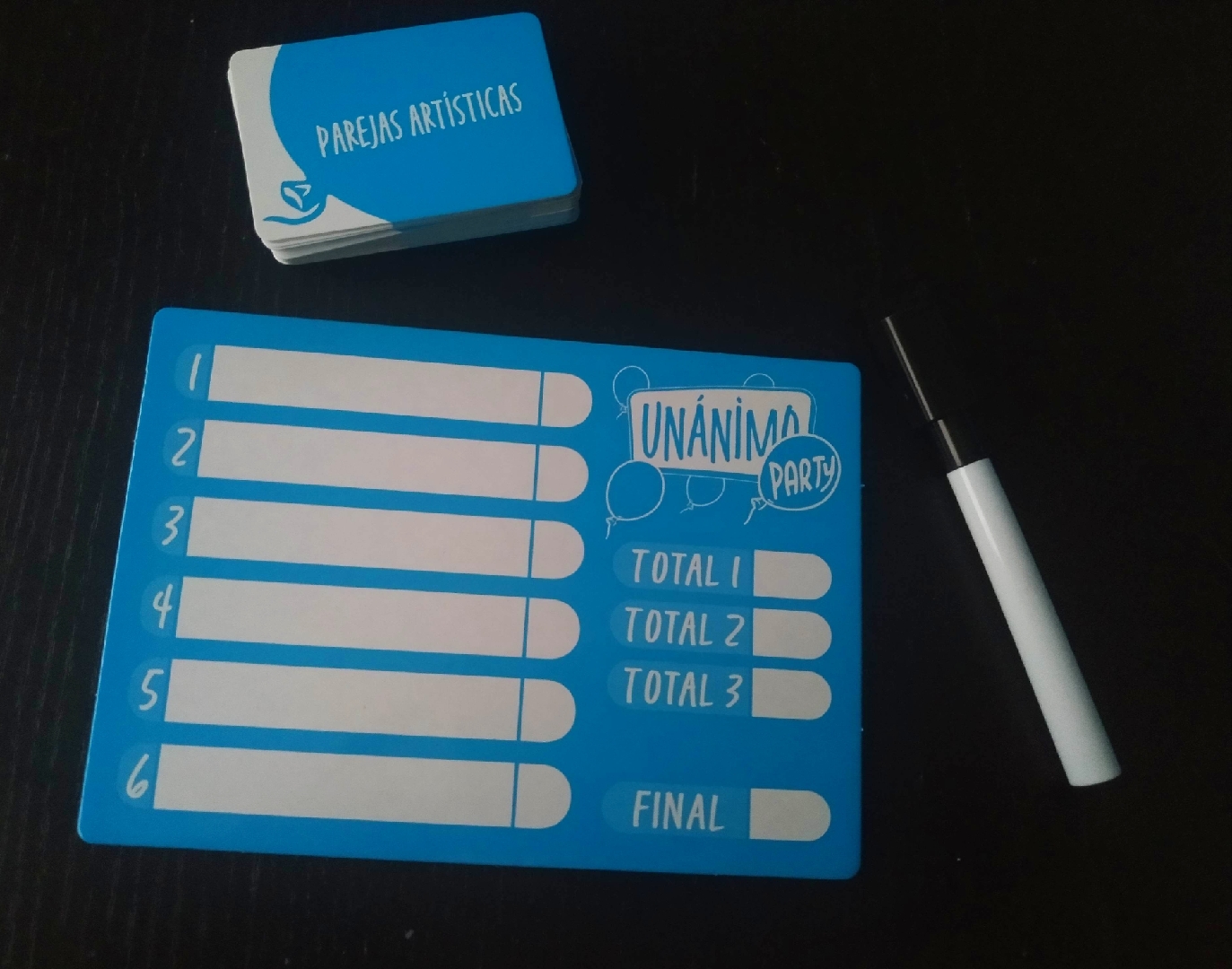 La partida durará tres rondas durante las cuáles tendremos que escribir en nuestra pizarra 6 palabras relacionadas con lo que indica la tarjeta que hayamos sacado en esa ronda. Al comprobarlas, sumaremos puntos por cada persona que haya coincidido con cada una de sus palabras entre sí.