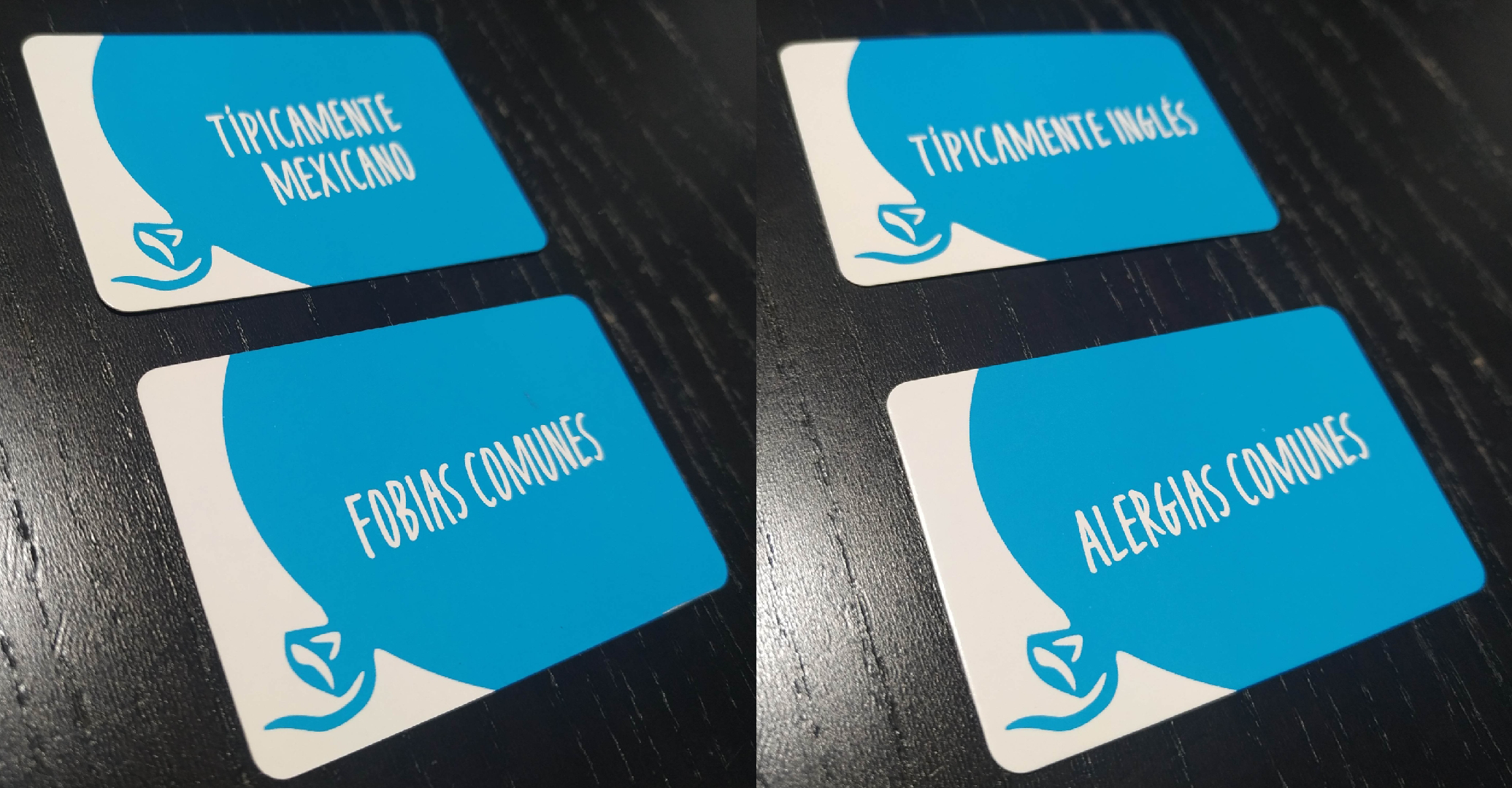 Nos hemos fijado en que cada una de las tarjetas tiene ambos lados relacionados entre sí. Por ejemplo los ejemplos que vemos en la imagen «típicamente inglés» y «típicamente mexicano» o «fobias comunes» con «alergias comunes».