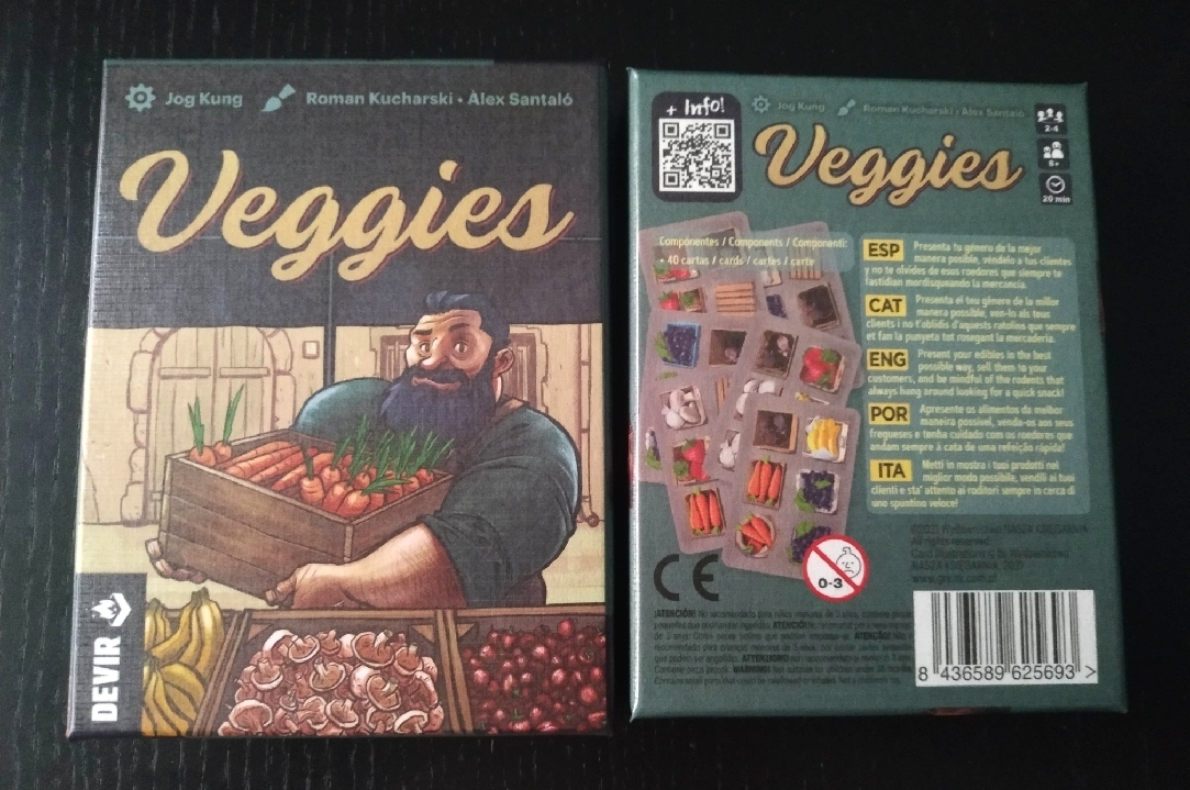 Veggies es bastante rápido y dinámico y a veces se puede llegar a hacer corto, debido a que cada partida estará limitada a jugar 8 turnos ya que es el máximo de cartas que puede tener cada jugador en su puesto de mercado antes de que se termine la partida. Esto sucede especialmente si solo somos 2 o 3 jugadores y que además ya sepan jugar bien. Es cierto que nada impide, si se quiere, que podamos jugar, acordando previamente, poniendo más cartas.