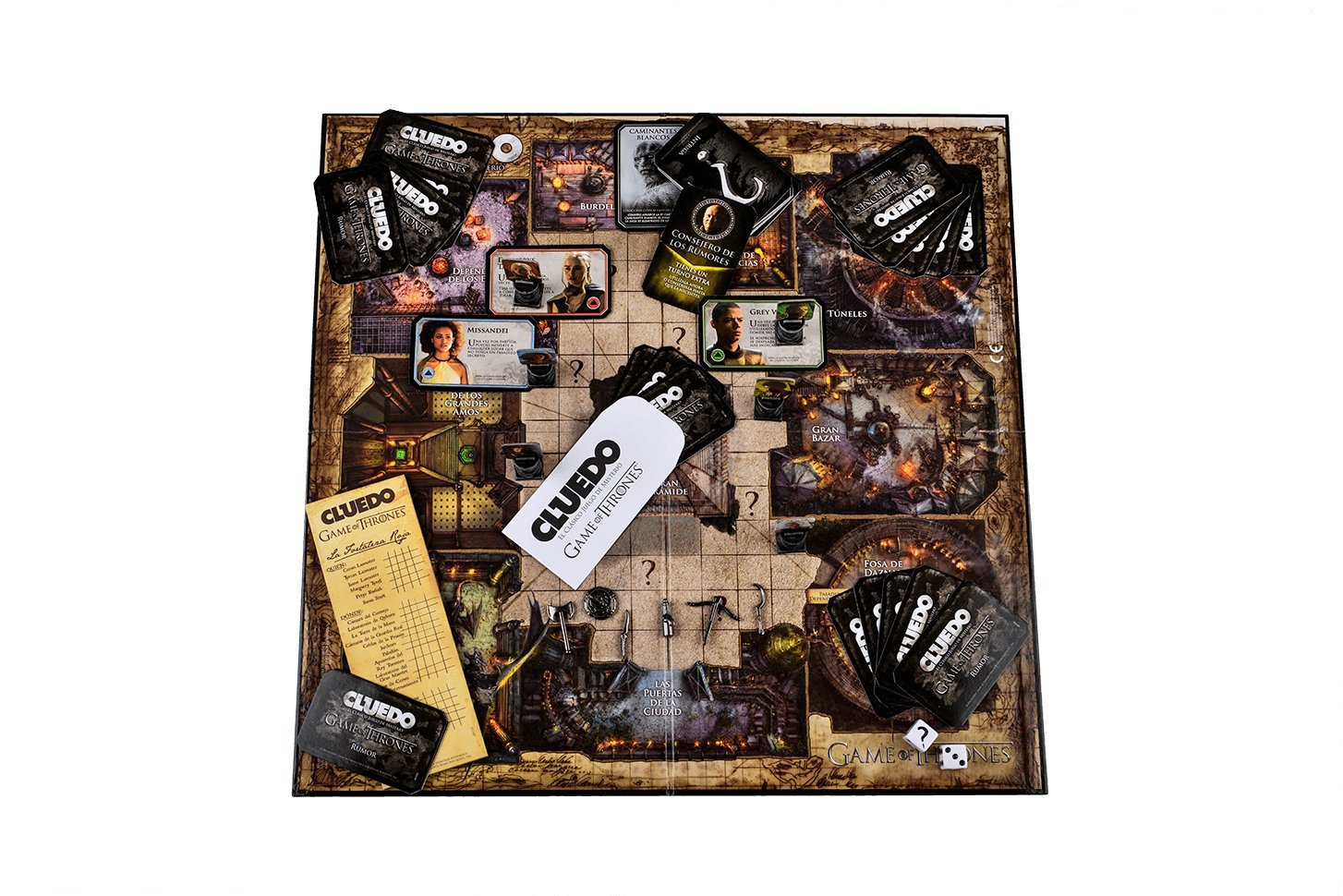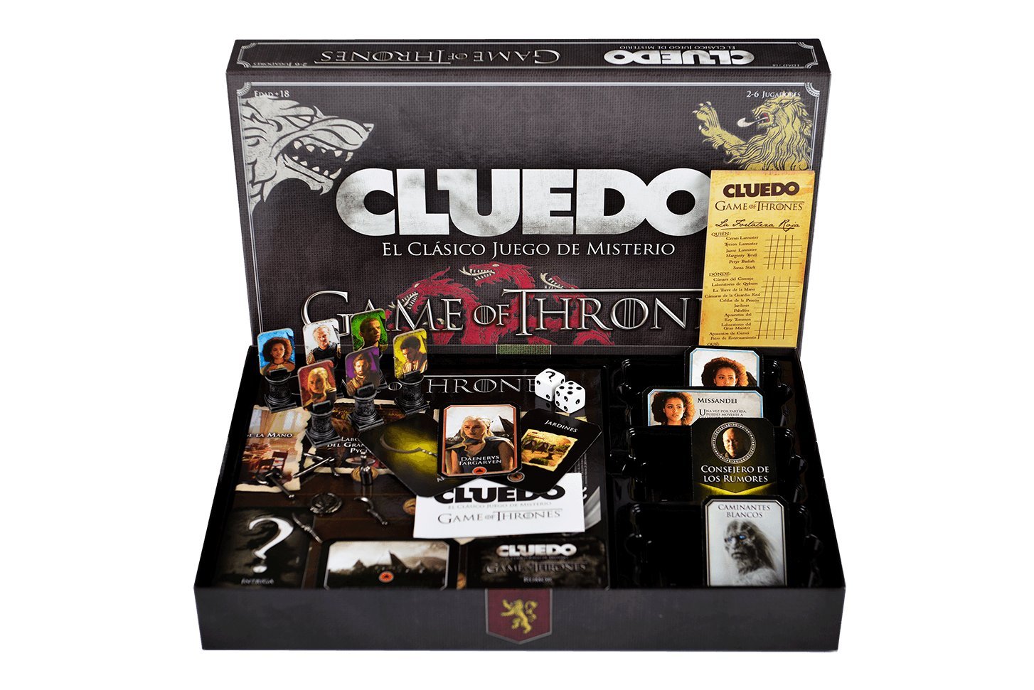 Si hay algo que caracteriza a Game of Thrones es la violencia y brutalidad, así que no resulta descabellado que se haya adaptado al juego de misterio más famoso: Cluedo. En esta oportunidad podrás investigar un crimen ocurrido en Mereen, donde han asesinado al Gran Maestre para destruir el acuerdo de paz establecido por Daenerys.