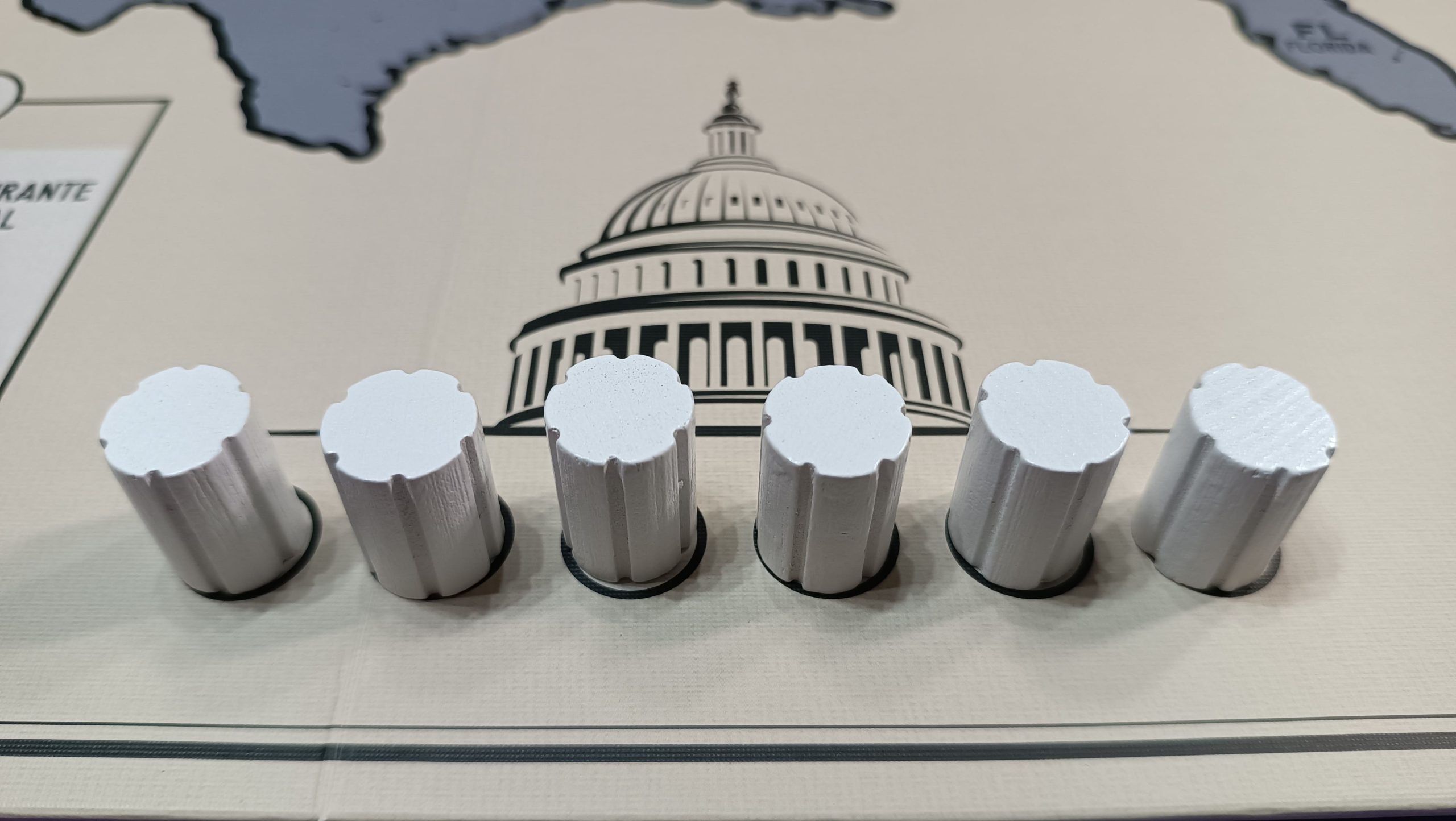 Cuando se coloque la sexta columna en el marcador del Congreso, significa que la Enmienda es enviada a todos los Estados. En ese momento se quitan las columnas y se analiza Estado por Estado el número de cubos que tiene cada jugador.