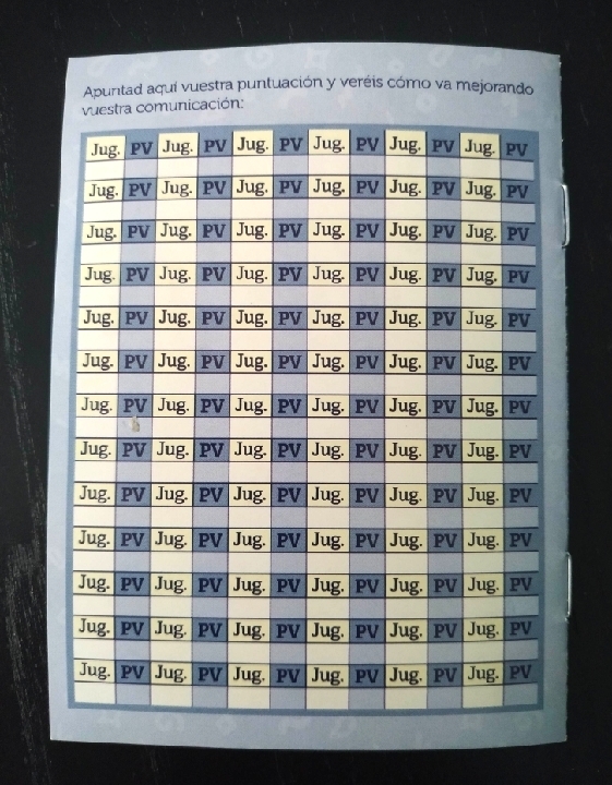 Podéis apuntar el número de jugadores y la puntuación final en la tabla que tenemos en la última hoja del libreto de instrucciones. En este juego no se gana ni se pierde, simplemente con la tabla de puntuación podremos comparar como lo hemos hecho en comparación con otras partidas anteriores.