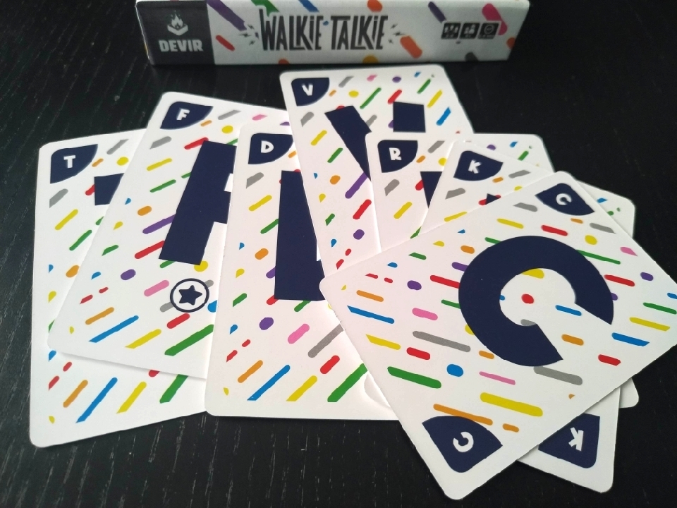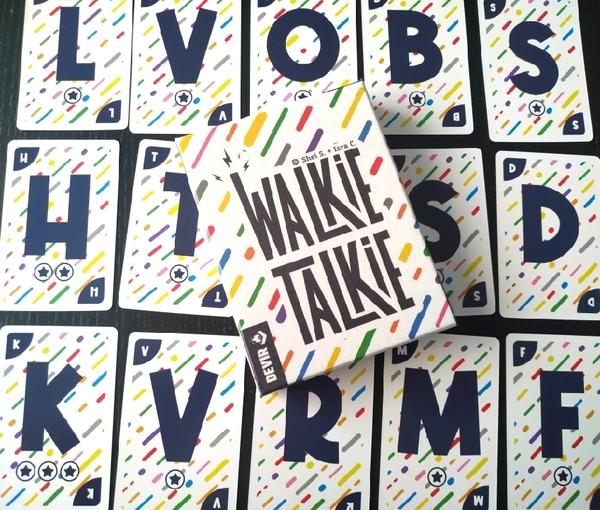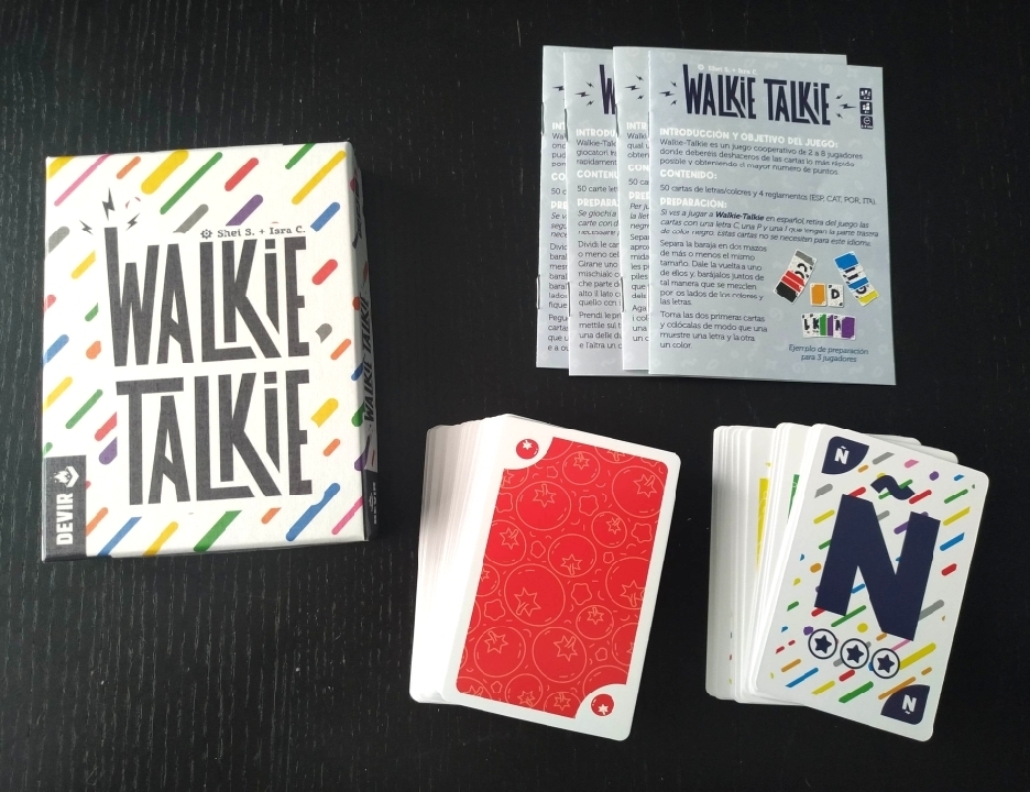 Walkie Talkie es un juego cooperativo en el que deberemos colocar las cartas de nuestra mano en cualquiera de los dos montones, letras o colores, diciendo palabras relacionadas con la inicial o el color que hay sobre la mesa.