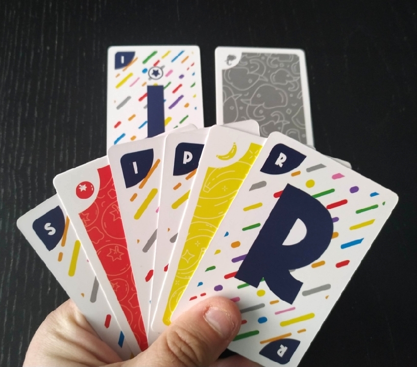 - Cambio: después de decir cambio todos los jugadores deberán dar la vuelta a todas las cartas de su mano. De ese modo, los colores para hacer letras y las letras pasarán a ser colores.