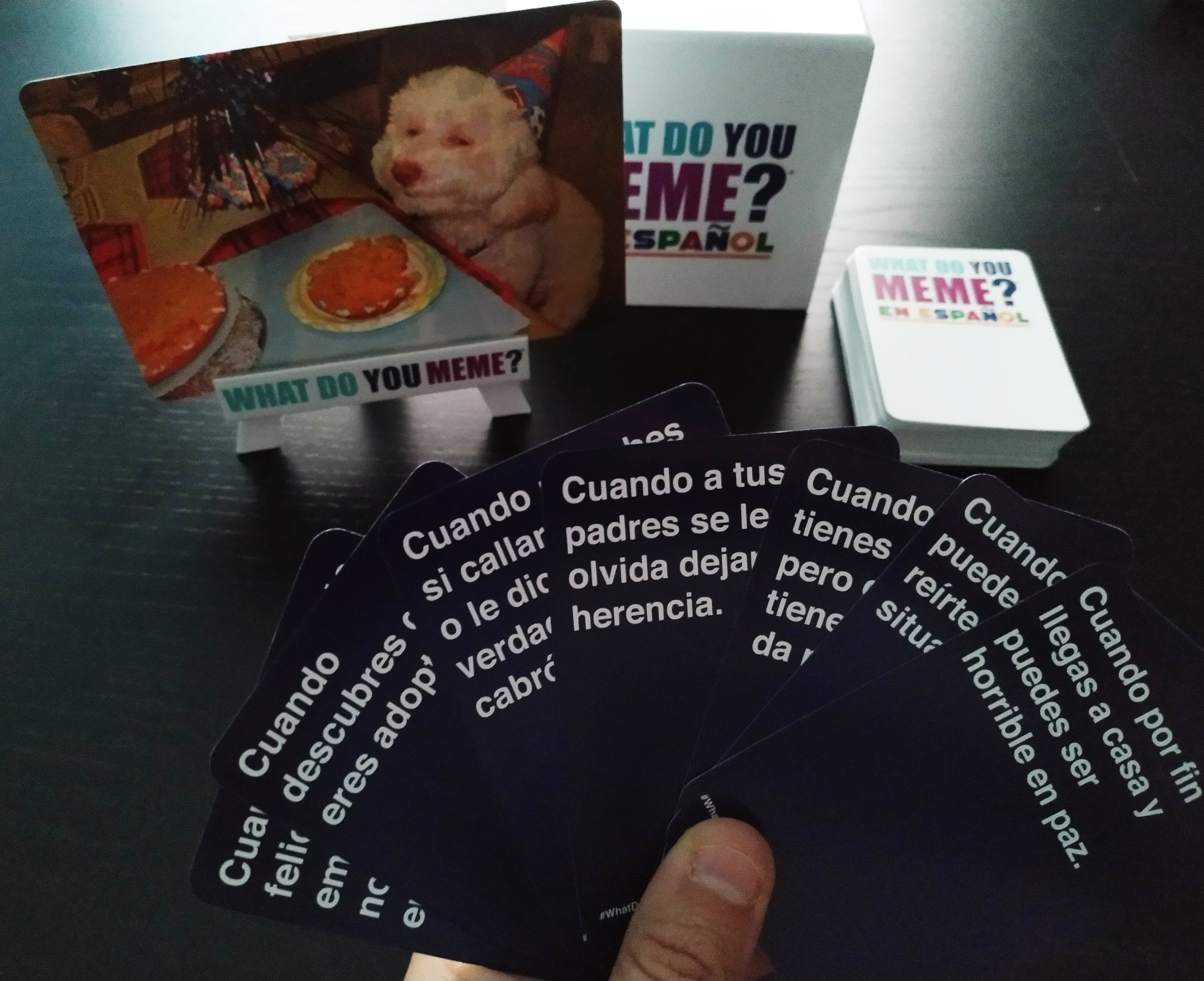 What do you meme? en español es un juego divertido para adultos amantes de los memes. ¿Qué es un meme? Es una imagen humorística, vídeo, texto que es copiado, a veces con ligeras variaciones, y difundido rápidamente por los usuarios de internet.
