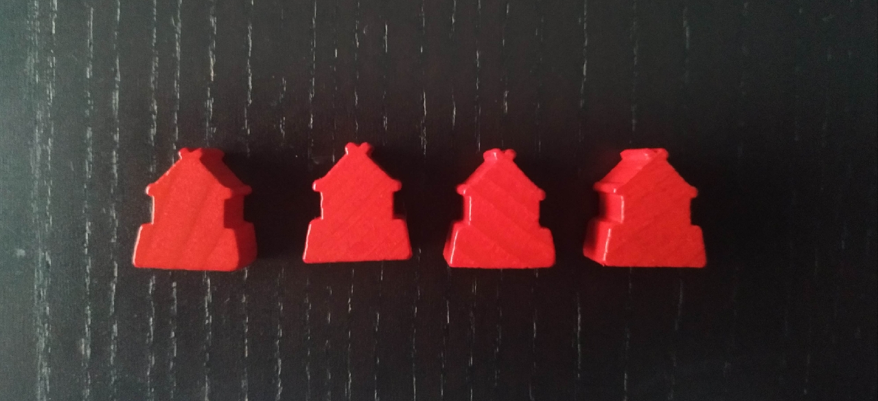 - Acción obligatoria: El jugador deberá colocar tres de sus casas en el tablero en el terreno representado por la carta de terreno que tiene actualmente en la mano y teniendo en cuenta las siguientes reglas: