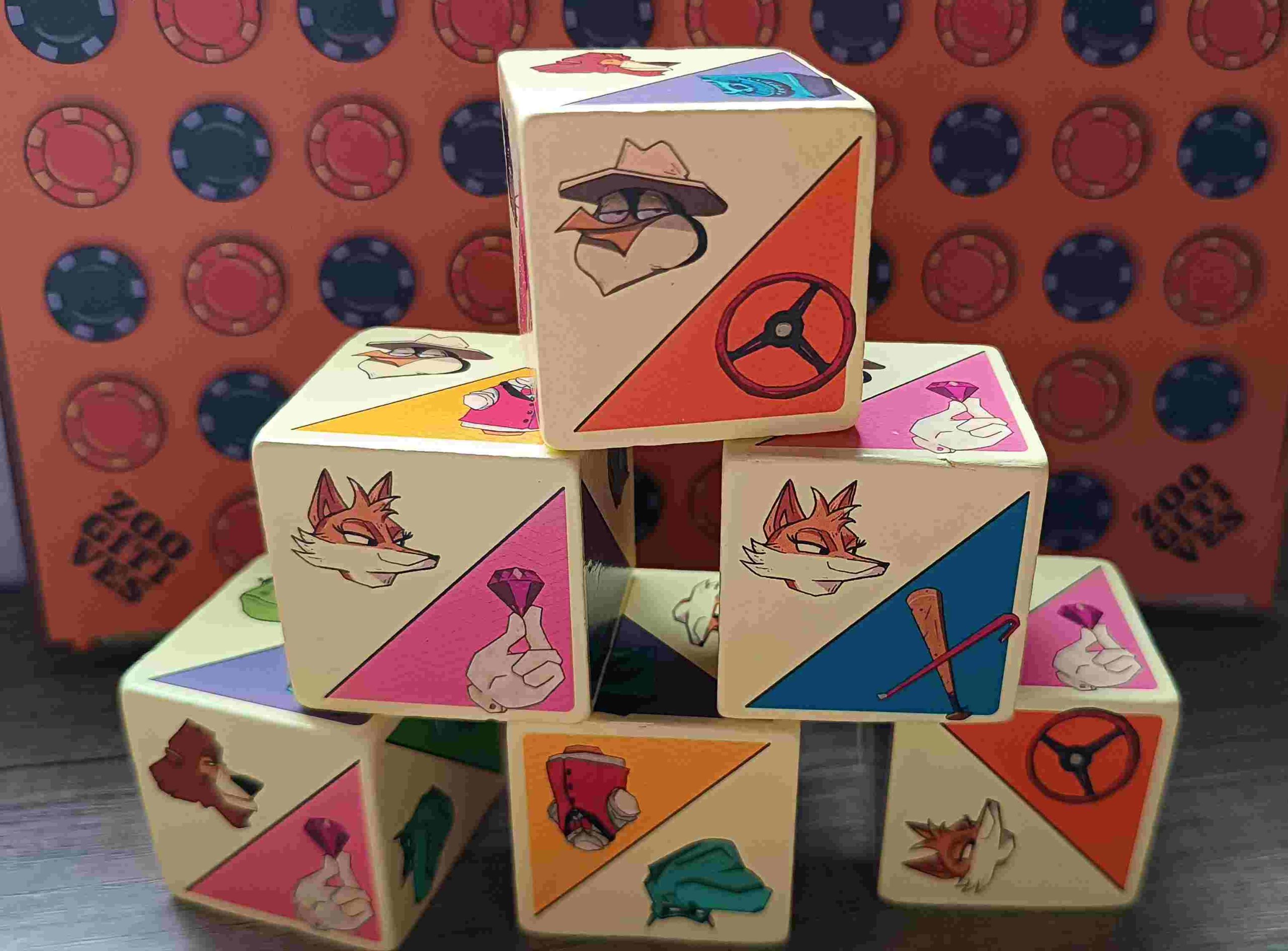 Colocaremos el tablero en el centro de la mesa y tiraremos los dados para elegir tres de ellos en los que no se repita ni color ni animal. Si se repite, habrá que relanzarlos.